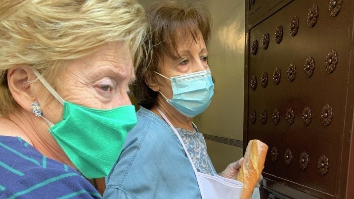 Cinco minutos. Cinco minutos justos, precisos. Cinco minutos cronometrados. Eso es lo que tardó Julián, un madrileño de 37 años, en convertirse en pobre."Me gano la vida desde hace años dando clases particulares de inglés y de francés. Daba unas 35 horas de clases a la semana y, a 15 euros (US$16) la hora, me sacaba unos 2.000 euros (US$2.180) al mes", explica Julián."Pero entonces llegó el coronavirus y el gobierno decretó el estado de alarma. Empezaron a llegarme mensajes y correos electrónicos de mis alumnos diciendo que cancelaban las clases. En cinco minutos, todos mis ingresos se habían esfumado".Julián aguantó los dos primeros meses con algunos ahorros que tenía. "Pero se me han acabado", nos cuenta.Ahora, desde hace cinco días, viene cada mañana al comedor social Ave María, en pleno centro de Madrid, gestionado por la Real Congregación de Esclavos del Dulce Nombre de María.Aquí le dan una bolsa con pan, una pieza de fruta, un yogur, un bocadillo, un envase con macarrones con tomate..."Hago la fila y me dan la comida. No me preguntan quien soy, y por eso vengo aquí, porque no paso tanta vergüenza como la que tendría que pasar en otro sitio y porque además el lugar queda lejos de donde vivo", dice parapetado tras una mascarilla y unas gafas de sol de cristales oscuros.___________________Hasta ahora, Natividad siempre había visto el hambre desde el otro lado.Como voluntaria de la parroquia de San Juan de Dios -en el barrio de la UVA de Madrid, uno de los más castigados de la capital española por la pobreza y la marginación- ha repartido muchas veces comida a los necesitados.Pero ahora, por primera vez, es ella la que hace la fila para que le den algo que llevarse a la boca para ella y Sara y David, sus dos hijos."Trabajaba limpiando casas. Y cuando comenzó el confinamiento, mis patronas me dijeron que dejara de ir. El primer mes, aunque no acudí, me pagaron. Pero el segundo ya no. Y en casa el único dinero que entra es el que yo gano, por eso estoy aquí", le explica al padre Gonzalo, el párroco de San Juan de Dios.Y así, miles y miles de historias. Miles y miles de personas que de un día para otro se han visto abocadas a la penuria absoluta por culpa de un virus microscópico llamado SARS-CoV-2 .La crisis económica desatada por la pandemia está causando estragos en España, donde más de 548.000 empleos se han volatilizado de la noche a la mañana. El número de personas sin trabajo ya asciende a 3,8 millones.Y al menos cuatro millones se han visto afectados por regulaciones temporales de empleo, lo que significa que, a pesar de las ayudas decretadas por el gobierno de Pedro Sánchez, en muchos casos sus salarios se han visto reducidos en un 50-80%.Por eso, las filas del hambre cada vez están más y más repletas."Está viniendo mucha más gente a por comida que antes. Antes aquí prácticamente solo venían personas sin hogar. Pero desde que empezó lo del coronavirus, vienen muchas, muchísimas familias", nos cuenta Petri, una de las voluntarias que distribuyen alimentos en el comedor social de Ave María.Sentado detrás de una mesa y junto a una botella de gel desinfectante para manos, el padre Gonzalo recibe cada día en la parroquia de San Juan de Dios a alrededor de 30 nuevas personas que acuden allí pidiéndole alimentos.Les atiende uno a uno, escucha la historia de cada uno de ellos, les pregunta por sus circunstancias personales...-¿Cuántos sois entonces en tu casa, Araceli?-Somos ocho, padre. Yo trabajaba cuidando de una persona mayor, pero cuando comenzó la epidemia de coronavirus me dijeron que dejara de ir. Mi hija Tatiana trabajaba en un bar, y le venció el contrato y no se lo renovaron. Mi hija Alejandra trabajaba como empleada doméstica, y también se quedó sin empleo. El único sueldo que ahora entra en casa es de mi marido, Miguel, y a él le han reducido la jornada de 8 a 4 horas, así que en lugar de 1.200 euros (US$1.310) al mes está ganando la mitad: 600 euros (US$655). Y solo de alquiler pagamos 770 euros (US$840) mensuales.Joaquín, un miembro de Cáritas -la organización oficial de la Iglesia católica para la caridad- va tomando nota de todos los datos.Al final, Araceli sale de allí con tres docenas de huevos, ocho botellas de leche, varios paquetes de pasta, aceite, arroz... Y con una buena dosis de humanidad y del calor que le ha regalado el padre Gonzalo, quien la despide diciendo: "Ven el jueves que viene con dos carros y cuatro manos, porque los alimentos que te vas a llevar van a ser muchos y pesan".La de San Juan de Dios es la parroquia de Madrid que más comida distribuye entre quienes la necesitan: unas 70 toneladas al mes. Hasta hace dos meses aquí daban alimentos a 450 familias al mes. Ahora ya son 650."Lo más difícil es gestionar la impotencia, la impotencia de no poder ayudar a todos. Yo tengo aquí mucha comida, pero tengo que dársela a quien realmente la necesita. Y discernir es difícil", nos cuenta el padre Gonzalo.Entre cinco y ocho horas dedica al día este sacerdote a atender a todos los que llaman a las puertas de su parroquia pidiendo desesperados comida. Y, a diario, le toca escuchar historias espeluznantes."El otro día, por ejemplo, llegó un señor desde Orcasitas (un barrio obrero de Madrid). Vino andando, necesitó hacer dos horas caminando para poder llegar hasta aquí. No tenía ni para pagarse el billete del autobús".Situaciones similares se viven por doquier. En el comedor de la Obra Socio-familiar Álvaro del Portillo de la parroquia San Ramón Nonato, también en Vallecas, antes se repartían unas 250 comidas diarias. Ahora, muchas más.El Ayuntamiento de Madrid ha recibido en un mes más de 33.500 peticiones de ayuda, casi las mismas que tuvo a lo largo de todo 2019. Y, como ocurre siempre, los más débiles son los que están pagando un precio mas alto por la crisis económica que ha traído el coronavirus."Agua, por favor, solo quiero una botella de agua", le suplica 