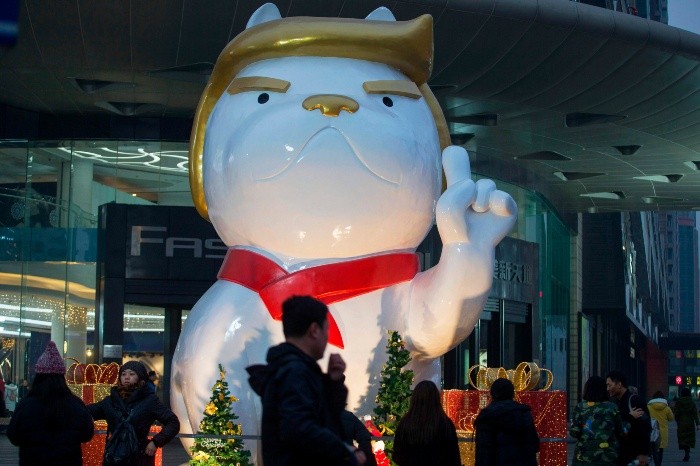 Un centro comercial chino, que el año pasado se dio a conocer por una escultura de un gallo que se parecía a Donald Trump, repitió este año a unas semanas del año del Perro con una obra representando al presidente estadounidense en forma de can.Muy comentada en las redes sociales, la escultura gigante erigida en Taiyuan (norte) representa una especie de bulldog blanco, sentado sobre sus patas traseras, con la mueca característica del multimillonario neoyorkino.El animal está peinado con un tupé dorado que recuerda al del presidente estadounidense. Levanta el dedo índice hacia el cielo, un gesto muy empleado por Trump durante sus discursos.El año del Perro, según el calendario lunar chino, empezará en febrero, siguiendo al del Gallo. Además, al haber nacido en 1946, Donald Trump pertenece al signo zodiacal chino del Perro, un rasgo que comparte con sus antecesores George W. Bush y Bill Clinton. Según los cánones astrológicos chinos, las personas nacidas en el año del Perro son directas y extremadamente leales, haciendo gala siempre de un acentuado sentido de la justicia. Pero también suelen ser testarudas e irritables. El pasado invierno, para celebrar el año del Gallo, el mismo centro comercial había expuesto una estatua del mentado animal con un tupé como el de Trump. La obra inspiró numerosas réplicas, incluyendo un modelo hinchable gigante que apareció este verano no muy lejos de la Casa Blanca. Aunque en ocasiones se divierten a costa de los dirigentes extranjeros, los chinos no acostumbran a hacer lo mismo con sus propios líderes, pues la censura y la autocensura velan por el respeto a los responsables comunistas en el poder.Los comentarios sobre el osito Winnie the Pooh fueron bloqueados el verano pasado en las redes sociales, después de que algunos internautas se burlaran del cierto parecido que el personaje guardaría con el presidente Xi Jinping. EDML