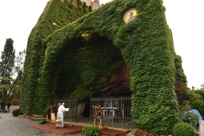 El Papa Francisco asistió este sábado al rezo del rosario en los jardines del Vaticano, acompañado por primera vez en casi tres meses, un acto que fue retransmitido por todo el mundo a través de Facebook.El rezo tuvo lugar en presencia de un centenar de personas, implicadas de una forma u otra en la pandemia de COVID-19 -que causó más de 33 mil muertos en Italia-, como personal sanitario, miembros de protección civil y otros.El Sumo Pontífice estaba sentado delante de la réplica de la cueva de Lourdes, meditando, de espaldas a los fieles, que guardaban una distancia de más de un metro entre sí.La oración fue retransmitida en directo por la página de Facebook del Vaticano y también por CTV, la cadena de televisión del pequeño Estado.Desde que empezó el confinamiento en Italia, el 10 de marzo, el Vaticano aplicó las mismas reglas de distanciamiento de seguridad que las impuestas en el resto de la península. Desde entonces, el Papa solo había recibido delegaciones muy reducidas, interrumpió sus audiencias semanales de los miércoles y los rezos del domingo desde la ventana del palacio apostólico de la plaza de San Pedro fueron sustituidos por una retransmisión en video de la oración oficiada dentro del edificio.Pero, a raíz del desconfinamiento progresivo que inició Italia, el Papa volverá a dar su oración dominical desde la ventana del Palacio a partir del domingo ante los fieles, que pueden reunirse de nuevo en la plaza de San Pedro desde hace una semana.Además, este sábado se celebraron oraciones similares a las del Vaticano simultáneamente en decenas de santuarios marianos del mundo, en Francia, Estados Unidos, Chile, Argentina, Canadá, Malta, Israel y Costa de Marfil.OF