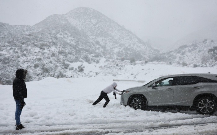 Fuertes nevadas cayeron en el sur de California, la primera tormenta invernal en una generación que golpea a Los Ángeles, mientras otras zonas se encuentran bajo amenaza de inundación.Presentadores del clima en la televisión, acostumbrados a anunciar sol y temperaturas amenas a diario, se vieron con nieve hasta las rodillas en algunas regiones gracias a la intensa tempestad, la peor en décadas.Debido al hielo y a la nieve, las autoridades cerraron algunas de las principales arterias viales, como partes de la Interestatal 5 que va de norte a sur y que conecta a Canadá, Estados Unidos y México. No hay una fecha estimada de reapertura."Hay condiciones peligrosas y potencialmente fatales debido a la nieve en las carreteras de montañas, desiertos y colinas en el sur de California", dijo el Servicio Meteorológico Nacional (NWS, en inglés)."Varias nevadas, además de fuertes vientos, causarán vendavales en algunos terrenos más elevados así como en montañas", agregó el departamento."Áreas próximas al litoral Pacífico y algunos valles en los cuales no es común ver nieve, podrán registrar algunas nevadas".La nieve y las ráfagas de viento cortaron el suministro de electricidad, dejando a 118 mil clientes en California sin servicio, según el portal poweroutage.us.Los canales de televisión enviaron a sus periodistas a las zonas montañosas donde algunos reportaron difíciles condiciones de tránsito, y otros conversaron con niños felices de tener un día libre por la nieve.Las redes sociales se inundaron con fotos de nieve en jardines y calles, gracias a los miles de residentes de la región maravillados con el clima de invierno.El NWS publicó en Twitter un tutorial para quienes tienen dificultades para nombrar al inusual polvo blanco que está cambiando el visual de las palmeras, en el sur de California."¿Se está preguntando qué tipo de precipitación helada cae del cielo (suponiendo que usted está en una región de elevación alta)? Aquí un infográfico que distingue entre aguanieve y granizo", tuiteó el servicio.Granizo ("duro y sólido") es "gotas congeladas de hielo producto de las tormentas", mientras que aguanieve ("suave y mojado") son "copos que colectan gotas súperfrías de agua en otras superficies", informó la agencia.En lugares de menor elevación, los aguaceros dieron pie a advertencias de inundaciones y deslaves.Las advertencias de inundaciones fueron emitidas para regiones de los condados de Ventura, Los Ángeles y Santa Bárbara, donde se esperaban unos 2.5 centímetros de lluvia en una hora."Hay un riesgo alto de inundaciones rápidas y deslaves", dijo el NWS."Pueden esperar fuertes lluvias, inundaciones en las carreteras, granizo y ráfagas de viento. Hay posibilidad de ver trombas marinas y tornados".El clima de invierno está causando problemas en otras regiones del oeste de Estados Unidos. Oregon reporta nevadas que casi alcanzan niveles récord, y Wyoming cerró varias de sus carreteras."Portland registró el segundo día más nevado de su historia [el jueves], con 10.8 pulgadas de nieve", informó el servicio local del clima.Las duras condiciones climáticas deben seguir afectando el tránsito aéreo en los próximos días. Fueron cancelados más de 340 vuelos hacia, desde o alrededor de Estados Unidos, mientras que otros 4 mil están atrasados este viernes.CR