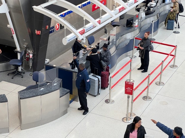 Según el seguidor de vuelos Flightaware, hay ya 9 mil 207 retrasos en vuelos dentro, hacia y desde EU y mil 306 cancelaciones.
