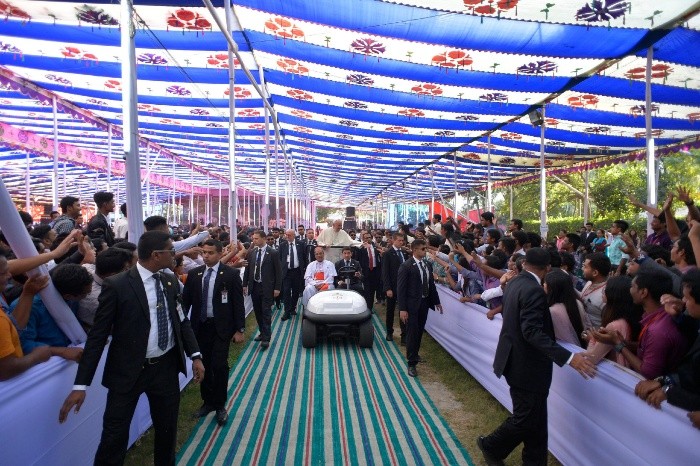 El Papa Francisco finalizó este sábado su viaje de tres días a Bangladesh con un discurso menos político, en el que dejó a un lado la crisis de la minoría musulmana rohinyá que había dominado los días previos, para lanzar un mensaje moralizante más destinado a los jóvenes, pobres y a la Iglesia Católica del país.El papa comenzó su última jornada en este país de 160 millones de personas (un 90 % de ellas musulmanas) en la Casa Madre Teresa de Tejgaon, la más pequeña de las gestionadas por las Misioneras de la Caridad y donde se alojaba la santa de Calcuta cuando viajaba a esta nación.Allí las hermanas ayudan a huérfanos, discapacitados mentales y físicos y cuenta con cerca de un centenar de camas para los más necesitados.Después caminó por el mismo predio en que también se ubica la iglesia del Santo Rosario, donde se reunió con religiosos y religiosas que le recibieron con fuertes aplausos y gran entusiasmo.Escuchó los testimonios de cinco religiosos y después, a la hora de dirigirse a los sacerdotes y monjas, seminaristas y novicias, Francisco sustituyó el discurso que había preparado para improvisar una charla en español, que fue traducida al inglés.En ella Francisco repitió el mensaje del peligro de las divisiones en el seno de las comunidades católicas y el mal que hacen "los chismes"."La lengua, la lengua, es esto lo que destruye una comunidad. El hablar mal de otros, el subrayar los defectos de otros, pero no decírselo y así crear desconfianza, recelos y un ambiente en el que no hay paz", agregó.Aseguró que eso es "terrorismo", porque "el que va a hablar mal de otro no lo dice públicamente, como el terrorista no lo dice públicamente; el que va a hablar mal de otro lo hace a escondidas. Tira la bomba y se va, y la bomba destruye todo y él se va tranquilo a poner otras", dijo.Más tarde, Francisco concluyó su agenda en Bangladesh con un encuentro con jóvenes en la Universidad de Notre Dame, donde instó a los jóvenes a que no se pasen "todo el día al teléfono, ignorando el mundo".Ante cerca de siete mil estudiantes, Francisco aseguró que "se siente rejuvenecer" cada vez que se encuentra con jóvenes, "siempre llenos de entusiasmo".Para encontrar el sendero justo, añadió Francisco, se necesita sabiduría, y para "recibir esta sabiduría debemos mirar el mundo, nuestra situación, nuestros problemas, todo, con los ojos de Dios"."Esta sabiduría nos ayuda a reconocer y a rechazar las falsas promesas de felicidad", señaló Francisco, que lamentó cuando los jóvenes se encierran en su mundo."Cuando un pueblo, una religión o una sociedad se convierten en un pequeño mundo, pierden lo mejor que tienen y caen en una mentalidad presuntuosa, la del 'yo soy bueno y tú eres malo'", opinó.Y, por ello, alabó que en este acto participasen también "muchos jóvenes amigos musulmanes y de otras religiones", pues así se muestra la determinación de "promover un clima de armonía, donde se tiende la mano a los otros, a pesar de vuestras diferencias religiosas", señaló.Tras el acto, y sin más paradas, el papa se dirigió directamente al aeropuerto internacional de Dacca, donde hacia las 17:10 hora local (11.10 GMT) abandonó el país en un avión de la aerolínea bangladeshí Biman rumbo a Roma.El papa ponía así fin a una pequeña gira asiática que comenzó el lunes en la vecina Birmania (Myanmar) y continuó el jueves en Bangladesh, con los dos primeros días en este país de mayoría musulmana dominados por la crisis de refugiados rohinyás.El jueves el papa pidió ayuda internacional para los rohinyás por la grave situación humanitaria que viven en el sureste de Bangladesh, adonde han huido desde Birmania más de 620 mil tras el último brote de violencia del pasado 25 de agosto.En la siguiente jornada, Francisco se reunió en Dacca con un grupo de miembros de esta comunidad y pronunció la palabra "rohinyá", un momento que no se había producido hasta entonces después de que en Birmania le hubieran recomendado evitarla porque podía suscitar las reacciones violentas de algunos extremistas.MA