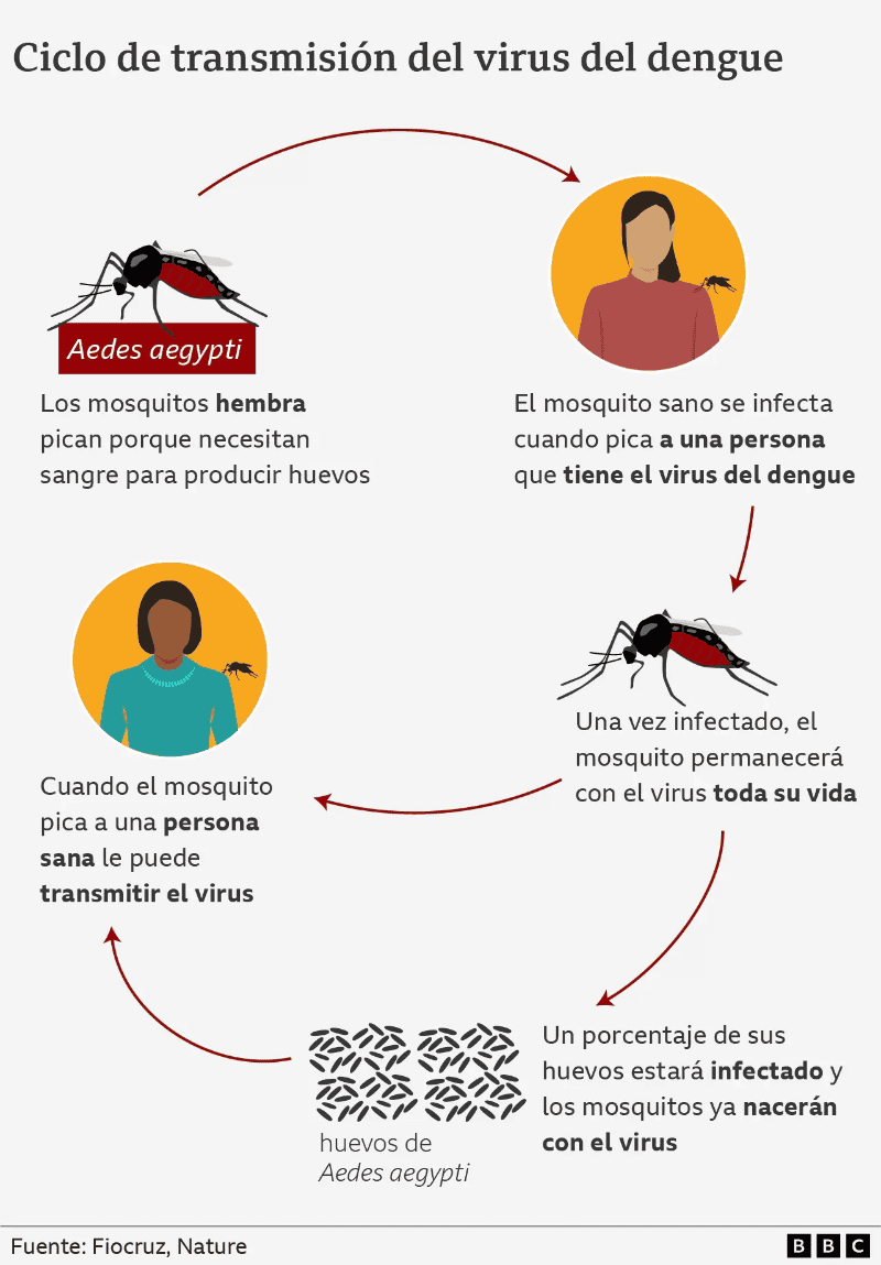 El doctor Carlos Hurtado avistó una piscina inflable en el fondo del patio.El epidemiólogo boliviano les dijo a los dueños de la casa que buscaba comprobar si había criaderos del mosquito Aedes aegypti, transmisor del virus causante del dengue. Pidió permiso para acercarse a la piscina y preguntó desde cuándo no cambiaban el agua."Desde hace tres meses", respondió el propietario.Cuando el doctor Hurtado sacudió los extremos de la piscina, que debía medir unos 10x5 metros, miles de mosquitos se elevaron del agua.En pleno verano austral y en época de lluvias, las paredes de la piscina estaban llenas de larvas y pupas de los mosquitos que transmiten el dengue en el departamento de Santa Cruz, en el oriente de Bolivia.Entre enero y febrero de 2023, Santa Cruz registró alrededor de un 75% de los 6.455 casos confirmados de dengue que el gobierno boliviano reportó a la Organización Panamericana de la Salud (OPS) durante las primeras seis semanas epidemiológicas del año.Santa Cruz tiene la mayor tasa de contagio de Bolivia, el país sudamericano donde más se ha incrementado el dengue a principios de este año, con un aumento de 1.247% en el número de casos confirmados con respecto a las primeras seis semanas de 2022.Bolivia forma parte de una tendencia regional de aumento en la transmisión de dengue con respecto al año anterior.Las estadísticas de la OPS indican que el contagio también se ha incrementado en las primeras semanas del año en México y Centroamérica, en la región andina y en los países del "Caribe latino", que incluye a Cuba, República Dominicana y Puerto Rico.56 personas han muerto por dengue en la región en lo que va de año, según la OPS.En medio de hospitales públicos saturados y operativos masivos de fumigación contra el mosquito transmisor Aedes aegypti, algunos gobiernos han adoptado medidas especiales para afrontar el brote.Perú declaró estado de emergencia en 13 de sus 24 provincias, mientras que las autoridades sanitarias de Bolivia emitieron alerta roja epidemiológica en La Paz, tras el aumento de la transmisión en Santa Cruz.Como ocurre cada año, la estación de lluvias ha renovado los criaderos de agua estancada donde se reproduce el mosquito que transmite el virus y causa síntomas como fiebre, dolores de cabeza, náuseas y vómitos, sarpullidos, inflamación de los ganglios y dolores corporales, generalmente detrás de los ojos.Sin embargo, algunos factores que potencian el contagio han cambiado. Expertos analizan en qué consisten y cómo afectan la transmisión y tratamiento del dengue.El aumento de la temperatura es el primer factor que incide en el contagio del dengue, especialmente en zonas donde no solía ser endémico."El tema es el cambio climático, las temperaturas son más altas", afirma la pediatra y salubrista María del Carmen Calle Dávila, secretaria ejecutiva del Organismo Andino de Salud, que agrupa y coordina a las autoridades sanitarias de Bolivia, Chile, Colombia, Ecuador, Perú y Venezuela."Esto favorece todo el ciclo de reproducción de los mosquitos y nos conduce al dengue".En el caso de Perú, por ejemplo, ha llovido más y han aumentado las temperaturas, explica la epidemióloga Karim Pardo, directora ejecutiva de Prevención y Control de Enfermedades Metaxénicas y Zoonosis del Ministerio de Salud en Lima.Asegura que este año hay mayor cantidad de nuevos distritos afectados por la transmisión de dengue."La dispersión del vector ha sido mucho mayor. Antes teníamos incremento de casos en estos meses en 4 o 7 departamentos. Ahora tenemos contagio en 13 al mismo tiempo".El hecho de que Brasil haya cerrado el año pasado con 2,3 millones de casos de dengue ha tenido un impacto negativo en la transmisión de la enfermedad entre los países vecinos, sostiene la especialista.El dengue tiene un comportamiento estacionario, es decir, el contagio está determinado por las condiciones del entorno donde habita el mosquito Aedes aegypti.La OPS advierte que la transmisión suele aumentar durante los meses más cálidos y lluviosos. Por ello, en el hemisferio sur el contagio se incrementa durante la primera mitad del año, mientras que en el hemisferio norte se eleva en el segundo semestre.Las interrupciones en el servicio de agua corriente y la falta de desagües obliga a las personas a almacenar agua limpia que acaba convirtiéndose en un entorno ideal para los criaderos del mosquito, señala la doctora Calle Dávila desde el Organismo Andino de Salud."La gente necesita ciertas condiciones de vida para evitar la enfermedad, como recibir agua por tuberías y saneamiento", dice Calle Dávila en una llamada telefónica desde Perú.La hembra del mosquito Aedes aegypti es capaz de colocar sus huevos en las paredes de envases, donde pueden sobrevivir durante meses, explican los Centros para Control de Enfermedades de Estados Unidos (CDC, por sus siglas en inglés).Una vez que los huevos se sumergen en agua, a lo largo de ocho días cumplen el ciclo de vida de larva a pupa hasta convertirse en mosquitos voladores, que se reproducirán dentro de la vivienda donde se encuentren.Por ello, es fundamental botar el agua para que no se estanque, limpiar los recipientes con frecuencia para remover los huevos, larvas y pupas del mosquito, así como mantenerlos limpios y cerrados."Justo ahora estamos viendo protestas por falta de agua en zonas de Perú que no se encuentran en las provincias, sino en la periferia de Lima Metropolitana", asegura la doctora Calle Dávila.En Perú, el estado de emergencia entró en vigor el jueves 23 de febrero y se mantendrá al menos durante 90 días en los departamentos de Amazonas, Ayacucho, Cajamarca, Cusco, Huánuco, Ica, Junín, Lambayeque, Loreto, Madre de Dios, Piura, San Martín y Ucayali.El doctor Carlos Hurtado, gerente de la Unidad de Epidemiología de la gobernación de Santa Cruz, en Bolivia, apunta que sus visitas a zonas con alta transmisión de dengue en la localidad del oriente bolivi