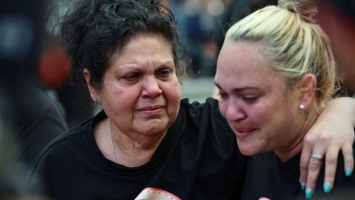 La madre de Cassius, Mechelle Turvey (izq.) con Emily Farmer durante una manifestación en Perth. GETTY IMAGES /