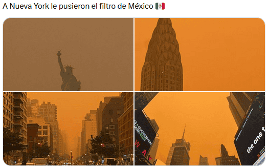 Los memes comenzaron a circular en redes sociales sobre la situación ambiental que vive la ciudad de Nueva York. ESPECIAL