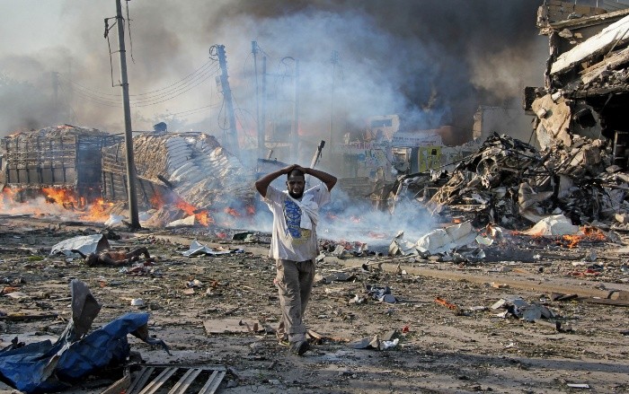 El doble atentado con camiones bomba que perpetraron ayer supuestos miembros de la organización terrorista Al Shabab en la capital de Somalia, Mogadiscio, mató al menos a 65 personas, confirmaron hoy a Efe fuentes de seguridad somalíes.El ataque al hotel Safari y un concurrido mercado de la ciudad es el peor que ha vivido Mogadiscio en tres décadas y causó un número aún indeterminado de heridos que puede provocar que la cifra de decesos aumente aún más en las próximas horas.Según los medios locales, la gran mayoría de los fallecidos eran civiles, principalmente vendedores ambulantes que comerciaban en una de las calles más transitadas de la ciudad, aunque el portal Radio Garowe asegura que un alto funcionario del Ministro de Comercio se también encuentra entre las víctimas mortales.El Comité Internacional de la Cruz Roja (CICR), por su parte, confirmó hoy en un comunicado que cuatro de sus cooperantes locales fallecieron en el atentado, un balance que podría aumentar ya que hay varios miembros de la organización desaparecidos.El presidente de Somalia, Mohamed Abdullahi Farmajo, decretó tres días de luto e hizo un llamamiento urgente a la población para que donase sangre a los hospitales, que están desbordados tratando de salvar la vida a los heridos.El Gobierno, que convocó una reunión de emergencia para reaccionar al atentado, ha desplegado más tropas para tratar de encontrar supervivientes.Sin embargo, algunos de los edificios de la principal calle comercial de Mogadiscio han quedado totalmente destruidos por las explosiones y se teme que haya cadáveres bajo los escombros, pues muchos habitantes de la ciudad siguen buscando a sus seres queridos desaparecidos tras el ataque."Perdí a mis tres hermanos en el atentado, estábamos en nuestra farmacia cuando se produjo", explicó a Efe Mohamed Abshir, que consiguió salvar su vida.Los expertos aseguran que los terroristas de Al Shabab planearon este atentado debido a la debilidad de un Ejecutivo dividido por los conflictos internos que no consigue establecer una relación cercana con los jefes del Ejército, razón por la que el ministro de Defensa, Abirashiid Abdullahi Mohamed, dimitió el pasado jueves.El analista de seguridad Ibrahim Shegow asegura que atentados virulentos como éste seguirán llevándose a cabo "a menos que (el Gobierno) acabe con sus problemas internos y mejore su capacidad militar".Por ahora, aunque los medios locales y analistas den por hecho que Al Shabab está detrás del atentado, el grupo yihadista aún no ha reclamado su autoría.La organización terrorista, que se afilió en 2012 a la red internacional de Al Qaeda, controla parte del territorio en el centro y el sur del país y aspira a instaurar un Estado islámico de corte wahabí en Somalia.Este país del este de África vive en un estado de guerra y caos desde 1991, cuando fue derrocado el dictador Mohamed Siad Barré, lo que dejó al país sin un gobierno efectivo y en manos de milicias radicales islámicas, señores de la guerra que responden a los intereses de un clan determinado y bandas de delincuentes armados.
