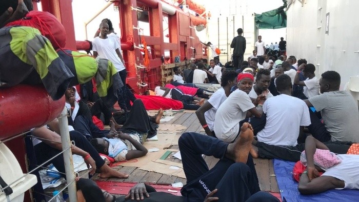 El primero es un barco de bandera española que lleva doce días solicitando infructuosamente permiso para atracar con 151 migrantes rescatados en aguas del Mediterráneo.El otro, de bandera Noruega pero fletado por las ONGs SOS Mediterranée y Médicos Sin Fronteras, rescató a otros 105 el lunes, para sumar 356 a bordo en poco más de una semana.Y el Ocean Viking, al igual que el Open Arms, tampoco ha podido conseguir un puerto seguro en el que depositar toda su polémica carga."Cada día que pasa es más difícil", alertó la ONG española Proactiva Open Arms, la dueña del barco del mismo nombre dedicado al rescate de migrantes que tratan de llegar a Europa a través del Mediterráneo.Según la organización, los migrantes -entre los que hay 31 niños- están hacinados en la cubierta de la embarcación, en medio de un mar cada vez más picado, mientras Europa mira a otro lado."Es infame el silencio de Europa. La falta de humanidad y empatía les hace más culpables", dijo la ONG en declaraciones recogidas por la agencia Efe, sobre la falta de respuesta a sus llamados y los del Ocean Viking.Si algo se está moviendo en las instituciones europeas, lo hace muy lentamente.El nuevo presidente del Parlamento Europeo, David Sassoli, le envió la semana pasada una carta al presidente de la Comisión Europea, Jean-Claude Juncker, exigiéndole involucrarse en la búsqueda de una "respuesta inmediata" a la situación del Open Arms, así como "una distribución equitativa de los migrantes".Y, según Efe, la Comisión asegura estar en contacto con los Estados miembros de la Unión Europea "para explorar soluciones".Pero la institución también reconoció que "no ha iniciado todavía una coordinación puesto que ningún país se lo ha solicitado".La situación recuerda el caso del Aquarius, la embarcación que en junio del año pasado rescató a más de 600 migrantes en aguas del Mediterráneo pero se vio negar el ingreso a Italia y Malta, los dos países europeos más cercanos.Eventualmente, y después de mucha polémica, los migrantes fueron recibidos por España.A finales de 2018, sin embargo, el Aquarius se vio obligado a suspender las operaciones de búsqueda que realizaba por cuenta de SOS Mediterranée y Médicos Sin Fronteras (MSF).Y la directora de esta última organización, Nelke Manders, también acusó a Europa de haberlos "saboteado y obstaculizado"."El fin del Aquarius significa más muertes en el mar y más muertes innecesarias de las que nadie será testigo", denunció en esa oportunidad Manders.Y el alto número de migrantes rescatados desde el reinicio de las operaciones de rescate de MSF y SOS Mediterranée el lunes pasado, ahora con el Ocean Viking, parece demostrar que el problema está lejos de haber terminado.La mayoría de los migrantes rescatados por la embarcación noruega, entre los que también hay 29 menores, son de origen sudanés y fueron rescatados cerca de las costas de Libia.De ahí también zarparon la mayoría de los rescatados por el Open Arms, llevando consigo "signos inequívocos de la violencia sufrida" en el país africano, dijeron sus tripulantes.Por eso mismo es que los barcos no consideran a Libia, que ya se ha ofrecido a recibir a los migrantes, como un puerto seguro, e insisten en atracar en Italia o Malta, los países europeos más cercanos.Por lo pronto, en el caso del Open Arms, dos mujeres enfermas pudieron ser evacuadas el lunes a Malta, junto a sus familiares, un día después de que un hombre también fuera trasladado a un hospital de la ciudad italiana de Lampedusa.Pero Italia se niega tajantemente a dejar atracar a esa embarcación y al Ocean Viking, los que según una ley aprobada la semana pasada ambas embarcaciones podrían ser incautadas y multadas con hasta un millón de euros en caso de intentarlo.Carola Rackete, la joven capitana de un barco que fue detenida en Italia por rescatar migrantes"Italia no es un campamento de refugiados de Europa. Que vayan a España o Noruega", dijo, tajante, el vice primer ministro italiano, Matteo Salvini, en declaraciones a la televisora estatal, RAI, el pasado fin de semana."Trabajando desde esta mañana para evitar el desembarco de 500 inmigrantes", se reafirmó en un mensaje publicado este lunes por la mañana en sus redes sociales.El también ministro del Interior quiere que el resto de países de la UE asuman una mayor responsabilidad en la acogida de migrantes y ha hecho todo lo posible para cerrarles las puertas.Y en el caso del Open Arms ha insistido que la responsabilidad de los migrantes es de Madrid, por tratarse de un barco de bandera española.Malta, por su parte, se ha dicho dispuesta a recibir únicamente a los 39 pasajeros del Open Arms rescatados dentro de su área de búsqueda y rescate."Malta solo puede asumir su propia responsabilidad, ya que no se han ofrecido otras soluciones ", aseguraron las autoridades maltesas en un comunicado.Y, según SOS Mediterranée, el pequeño país insular también le negó al Sea Viking el permiso para ingresar siquiera a sus aguas territoriales para repostar, sin ofrecer ninguna explicación para la negativa.El gobierno español, por su parte, ha dicho que el Open Arms todavía no ha pedido permiso para dirigirse a un puerto español pero también insistió en que era Italia quien tenía que recibir a los migrantes."Lo más sensato es que se dirija al puerto cercano más seguro, que se encuentra en las costas italianas", declaró este lunes la ministra de Hacienda, María Jesús Montero.Y Montero también descartó la noción de que los migrantes puedan ser considerados responsabilidad exclusiva de España, abogando porque sea la Unión Europa la que "distribuya después a estas personas".En la misma línea, el ministro de Fomento en funciones, José Luis Ábalos, descalificó la solicitud de asilo en España para los 31 menores a bordo de la embarcación, hecha por su capitán, aduciendo que este no tenía las competencias legales para hacerlo.Y en d