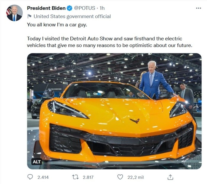 El presidente de Estados Unidos, Joe Biden, respaldó este miércoles el futuro de los autos eléctricos en un renovado Salón de Detroit."El gran viaje por carretera estadounidense va a ser totalmente eléctrico", proclamó Biden tras probar un auto en una rodada por el salón de exhibición."Cuando ustedes conduzcan de costa a costa a lo largo de la I-10 o de la I-75 aquí en Michigan, las estaciones de recarga estarán tan disponibles y fáciles de encontrar como lo están hoy las de gasolina", explicó el mandatario.La visita de Biden dio un mayor perfil a la nueva y más pequeña versión del salón del automóvil de Detroit, que arrancó el miércoles con la ausencia de la mayor parte de los fabricantes extranjeros y de nuevos actores como Tesla.Mientras que los autos a gasolina siguen dominando las rutas de Estados Unidos, los gigantes de Detroit presentaron más modelos eléctricos en un intento por arrebatar el control de un creciente mercado dominado por Tesla y otros nuevos jugadores.Biden promulgó semanas atrás una ley para impulsar las inversiones en semicondutores y combatir el cambio climático, que incluye fondos para instalar estaciones de recarga para vehículos eléctricos.Un reporte de la Casa Blanca destaca grandes decisiones de inversión por parte de varias empresas que suman cerca de 85 mil millones de dólares para la fabricación de vehículos eléctricos, baterías y estaciones de carga en Estados Unidos desde la llegada de Biden a la Casa Blanca.Biden ha tenido una relación larga y cercana con los gigantes de Detroit desde su época de vicepresidente, durante el mandato de Barack Obama (2009-2017), cuando lideró el rescate de las empresas del sector tras la crisis de 2008. Y como presidente, ha visitado tanto a GM como a Ford.JM