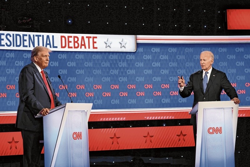El primer enfrentamiento rumbo a las elecciones presidenciales en Estados Unidos tuvo un ambiente tenso, con la animadversión mutua entre el presidente Joe Biden y el ex mandatario Donald Trump. Fueron 90 minutos que se convirtieron en un largo periodo de choques con los temas de economía, migración y aborto. El tono del evento quedó claro desde el inicio cuando ambos políticos no se dieron la mano al salir al escenario del estudio de la cadena CNN.El republicano Trump aprovechó los lapsus de su rival para dominar y despegar de las encuestas que los mantenían hasta anoche prácticamente con mínima diferencia. Biden, por momentos, perdió el hilo de su discurso y dudó en algunas respuestas, situación que aprovechó Trump para imponerse en el momento de “pánico”, como fue etiquetado por algunos analistas políticos.Solange Márquez, analista internacional, subrayó que Trump, “a pesar de todas sus mentiras, se mostró mucho más fuerte que Biden. Para el presidente actual ha sido uno de los peores días de su campaña. Vimos a un Joe Biden incapaz de responder a las mentiras de Trump, a un Biden que perdía el hilo de la conversación fácilmente, que hablaba bajito, que de pronto se le iban los tiempos. Ha sido un debate bastante malo para la campaña demócrata. Es un momento en el que probablemente puedan empezar a discutir si Biden realmente es el candidato ideal”.Ambos candidatos se acusaron mutuamente de mentir sobre temas que van desde los veteranos y la frontera, hasta el estado de la economía estadounidense y la inflación.Trump atacó repetidamente a Biden por su manejo de la economía y su historial de política exterior, así como por las cifras récord de llegada de inmigrantes. Biden, por su parte, apuntó a la reciente condena penal del republicano y repitió que es “una amenaza a la democracia”.Especialistas consideran que no hubo momentos memorables y más que hechos, propuestas de Gobierno o acciones, quedaron más grabados en la memoria de los votantes algunos choques y frases contundentes como: “Eres el peor presidente de la historia” (como arremetió Trump) o “eres un peligro para la democracia” (como respondió Biden).Esta es la segunda vez que Biden y Trump se disputarán la Casa Blanca, después de que el republicano perdiera las elecciones de 2020, aunque ambos todavía deben ser nominados oficialmente por sus respectivos partidos. El presidente Joe Biden y el ex presidente Donald Trump arrancaron su primer debate rumbo a las elecciones presidenciales de 2024 sin estrecharse las manos y con ello mostraron desde un principio el tono en el que llevarían el debate.El presidente estadounidense Joe Biden buscó repetidamente la confrontación con Donald Trump en su primer debate rumbo a las elecciones de noviembre, mientras que su rival republicano respondió a las críticas de Biden apoyándose en falsedades sobre la economía, la inmigración ilegal y su papel en la insurrección del 6 de enero de 2021 en el Capitolio.La vacilante actuación de Biden cristalizó la preocupación de muchos votantes estadounidenses de que, a sus 81 años, es demasiado mayor para ejercer de presidente. Esto provocó una nueva ronda de exhortos para que el demócrata se aparte de la contienda.Por su parte la retórica de Trump, de 78 años, ofreció un recordatorio quizás no deseado de la grandilocuencia que lanzó a diario durante sus tumultuosos cuatro años de mandato, mientras batalla para ganarse a los votantes escépticos. Rechazó declarar claramente si aceptará los resultados de las elecciones de noviembre, cuatro años después de que promovió teorías de conspiración sobre su derrota que culminaron en la insurrección del pasado 6 de enero y que salió a tema en el debate.Biden atacó repetidamente a Trump en términos personales en un aparente intento de provocarlo, sacando a colación desde la reciente condena del ex presidente por un delito grave hasta su supuesto insulto a los veteranos de la Primera Guerra Mundial, pasando por su peso y su juego de golf. Pero su titubeante discurso desde el principio del debate fue lo que más llamó la atención. Los aliados de Trump clamaron inmediatamente la victoria, mientras que destacados demócratas cuestionaron públicamente que Biden pudiera seguir adelante. “Creo que hubo una sensación de shock, en realidad, por cómo salió al principio de este debate, por cómo se escuchaba su voz. Parecía un poco desorientado. Se recuperó a medida que avanzaba el debate, pero para entonces, creo que el pánico se había hecho presente”, dijo David Axelrod, asesor del ex presidente Barack Obama, a la cadena CNN inmediatamente después del debate. “Y creo que se van a oír discusiones que, no sé si llevarán a algo, pero va a haber discusiones sobre si debe continuar”, indicó Van Jones, otro estratega demócrata, que reafirmó: “No lo hizo nada bien”.Agencias Biden, con un tono bajo y la voz ronca, habló de los avances económicos durante su mandato, diciendo que lo rescató de la “caída libre” y el “caos” cuando asumió la presidencia en 2021, al concluir el mandato de Trump. Carraspeó varias veces.Trump escuchó con expresión perpleja pero no intentó interrumpirlo, aunque su micrófono estuvo silenciado mientras hablaba Biden.Cuando llegó su turno de hablar, Trump presumió el estado de la economía durante su mandato, diciendo que “todo iba muy bien”. Culpó a Biden de la subida de precios que ha frustrado a los estadounidenses. “La inflación está matando a nuestro país”, aseveró Trump. “Nos está matando”. Biden culpó a Trump por erosionar los derechos al aborto luego de que los tres jueces designados por el ex mandatario republicano a la Corte Suprema federal votaron a favor de anular el fallo del caso de Roe contra Wade, que había reconocido el derecho constitucional al aborto en todo el país. La revocación ha animado a muchos votantes que apoyan el dere