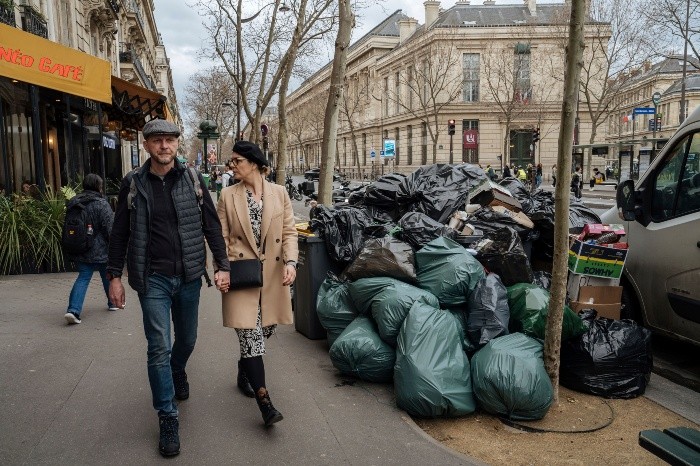 Desde la mayor incineradora de residuos de Francia, el sindicalista Ali Chaligui advirtió este martes que los paros de los basureros en París, iniciados hace más de dos semanas, se endurecerán si el Gobierno no retira su reforma de las pensiones."Lo haremos mediante el principio de la huelga, que es una acción colectiva, discutida y dentro de un marco legal. Eso será suficiente para detener la reforma", afirmó Chaligui, desmarcándose de las acciones violentas que sí se han reproducido en algunas manifestaciones espontáneas antigubernamentales las últimas noches.La huelga de la recogida de desechos en París está siendo uno de los símbolos de la profunda insatisfacción social por el proyectado retraso de la edad mínima de jubilación de los 62 a los 64 años en Francia.La capital de la moda, del glamour, de los museos y de la alta cocina, se ha encontrado en el espacio de unos días repleta de basuras esparcidas en las calles.Una situación que el Ejecutivo francés ha intentado remediar decretando la vuelta al trabajo obligatoria de decenas de profesionales de la limpieza. Sin embargo, para Chaligui, representante de la Confederación General del Trabajo (CGT), "hay mucho cuento mediático" sobre ese tema."El movimiento de huelga continúa y se amplifica, con o sin imposición gubernamental", aseguró.Sin ofrecer cifras de las toneladas aún por recoger -el Ayuntamiento ha calculado que son 10 mil-, el prefecto de Policía de París, Laurent Núñez, declaró a BFMTV que continuarán imponiendo a ciertos trabajadores la recogida de la basura, así como los desalojos de piquetes en los depósitos de camiones y en los centros de tratamientos de residuos.A pesar de esos avisos, los huelguistas de Ivry replicaron que no se echan para atrás y que pondrán toda la carne en el asador para impedir una reforma que entrará en vigor en breve, una vez que el Gobierno de Emmanuel Macron superase el lunes dos mociones de censura, una de ellas por sólo nueve votos."Es una reforma injusta, porque nosotros tenemos esperanza en una vida mejor, no llegamos con salud hasta el final de nuestras carreras", se indignó Chaligui.Con la entrada en vigor de la reforma, los trabajadores de limpia, dependiendo de si son del sector público o privado, verán retrasada su edad mínima de jubilación de 57 a 59 años, por debajo de la norma general porque se considera un oficio particularmente penoso.¿Cuáles serán las nuevas medidas para endurecer la protesta? Según varios sindicalistas del sector, atraer a más empleados a la huelga. En París hay un total de 10 mil profesionales, incluyendo los implicados en todos los procesos.JM