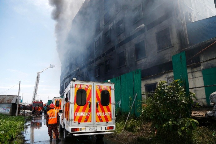 Un masivo incendio en una fábrica de alimentos cerca de Dacca, la capital de Bangladesh, ha dejado al menos 52 muertos y 25 heridos en el peor suceso de este tipo en el país asiático desde que un fuego en una planta química acabó con la vida de 70 personas en 2019.Además de las víctimas mortales, las autoridades siguen buscando a desaparecidos, dijo a la prensa desde el lugar del incidente el inspector general adjunto de la Policía de Dacca, Habibur Rahman.El director adjunto del departamento de bomberos, Debashis Bardhan, dijo que todos los cadáveres fueron encontrados en el tercer piso, donde la puerta estaba bloqueada y los trabajadores no pudieron huir.El incendio en la fábrica de Alimentos y Bebidas de Hashem comenzó el jueves por la tarde y unos 250 obreros se encontraban en el interior, según el inspector adjunto de la Policía local, Joytirmoy Saha"Pero no todos ellos quedaron atrapados por el incendio. Muchos lograron escapar", dijo Saha.Las llamas se extendieron con rapidez por las seis plantas de la fábrica, que como precisó el jefe del departamento de bomberos de Dacca, Dinu Moni Sharma, estaba repleta de materiales químicos altamente inflamables así como de contenedores de plástico."Es una fábrica en la que se producen zumos, por lo que dentro había contenedores de plástico, químicos, aceite y conservantes. Muchos de estos elementos son inflamables, por lo que el fuego se extendió rápidamente", dijo Sharma.El jefe de bomberos afirmó que las labores de extinción se vieron complicadas por la gran superficie de la fábrica."Cada piso mide más de tres mil metros cuadrados y hay muchos compartimentos, esto nos ha causado problemas para apagar el fuego", explicó.El intenso fuego provocó grietas en el edificio y los cristales y el aluminio de las ventanas resultaron destrozados por el calor.Los bomberos lograron controlar el incendio y comenzó entonces la búsqueda de cuerpos, dijo a Efe Rasell Shikder, uno de los participantes en la operación.Shuvash Chandra Shaha, superintendente adjunto de Narayanganj, donde se encuentra la fábrica siniestrada, declaró a la prensa desde el Hospital Universitario de Dacca que las autoridades están recopilando muestras de ADN para identificar a las víctimas, mientras intentan localizar a un número desconocido de desaparecidos.Rakib y Hasnain, de 26 y 14 años respectivamente, se encontraban trabajando en la fábrica durante el incendio y siguen desaparecidos, dijo su tío, Helal Uddin."Nos enteramos del fuego hacia las nueve de la noche, e intentamos llamarles pero tenían el teléfono apagado", recordó Uddin."Después empezamos a llamar a su supervisor, Motaleb, que tras de cien intentos nos dijo que habían escapado de la fábrica. Pero no sabemos dónde están y el teléfono de Motaleb está desconectado, así que hemos venido al hospital pero no hemos podido identificar sus cuerpos", lamentó este residente de Narayanganj, mientras esperaba a dar una muestra de ADN.Los incendios y accidentes en fábricas de Bangladesh son comunes.En 2019, un incendio masivo en una planta de productos químicos en la misma zona mató a 70 personas e hirió a 55.Siete años antes, al menos 119 personas murieron en un incendio en una fábrica de ropa en el país asiático.GC