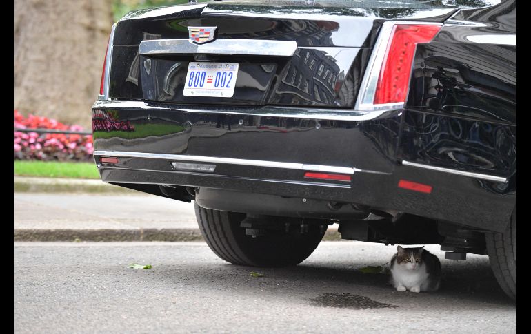 Un pequeño gato robó cámara durante la visita del presidente de Estados Unidos, Donald Trump, a Londres."Larry" es una famosa mascota en Reino Unido, pues habita en el número 10 en Downing Street, residencia oficial del primer ministro británico en turno. El animal se colocó el martes debajo de "La Bestia", el vehículo oficial del mandatario estadounidense, quien acudió un encuentro con Theresa May, primera ministra del Reino Unido, en el marco segundo día de su visita de Estado.Y esto provocó un incidente de "seguridad", pues el vehículo no pudo moverse hasta que "Larry" se retirara, según bromearon reporteros que cubrieron el evento."La Bestia" es una limusina blindada, con llantas resistentes a ponchaduras y valuada en 1.5 millones de dólares. Destaca por su peso de unas 9.8 toneladas.Además, el minino le robó cámara al mandatario durante una foto en la entrada principal de la residencia. "Larry" fue captado descansando junto a una de las ventanas.Según la página oficial del gobierno británico, el "primer gato" ha conquistado al público que le envía regalos y premios a diario.LEE TAMBIÉN: "Baby Trump" sobrevuela Londres en protesta multitudinariaIM