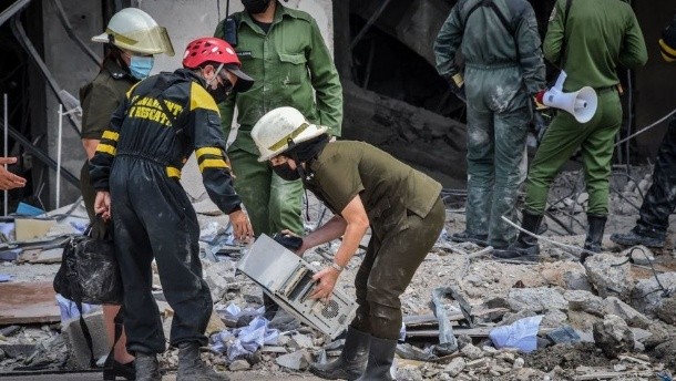 La explosión ocurrida la pasada semana en el hotel Saratoga de La Habana causó al menos 43 muertos y casi un centenar de heridos, según los últimos reportes de las autoridades cubanas.Mientras, los equipos de rescate continúan la búsqueda de desaparecidos a cinco días del suceso.El hotel estalló en la mañana del viernes en lo que las autoridades describieron como "un accidente provocado por una fuga de gas".Desde entonces, el número de fallecidos ha ido creciendo con los días e incluye a niños, extranjeros y mujeres embarazadas.En su último informe en la noche del martes, el Ministerio de Salud dijo que 17 personas continuaban hospitalizadas, cinco de ellas menores de edad."Hasta el momento se reportan 43 fallecidos, uno de ellos en proceso de identificación", indicó el organismo.En declaraciones a la estatal Agencia Cubana de Noticias, el jefe del Cuerpo de Bomberos Luis Guzmán aseguró que las fuerzas de rescate siguen en la búsqueda de más víctimas en las áreas de la cocina y el comedor del hotel.Según dijo, se cree que al menos tres trabajadores que se encontraban allí en el momento de la explosión no han sido contactados.El Saratoga estaba cerrado en el momento de la explosión, pero se cree que más de 50 trabajadores se encontraban en su interior preparándolo para su reapertura, prevista para este miércoles.Más de 20 edificios en las cercanías del hotel también fueron afectados por la explosión, incluida una escuela primaria.Las fachadas frontales y laterales de los primeros pisos del Saratoga quedaron prácticamente destruidas, aunque el edificio no se ha derrumbado.De acuerdo con la Presidencia de la isla, "investigaciones preliminares indican que la explosión la provocó un escape de gas".La detonación no provocó un incendio que fuera visible en las imágenes captadas por las personas que se encontraban en el lugar del suceso, por lo que no está claro de momento cómo se generó.Medios oficiales dijeron que la explosión tuvo lugar en el momento en el que un camión cisterna suministraba gas al hotel.Las autoridades no han informado si el Saratoga, uno de los más caros y lujosos de La Habana, contaba con sensores para detectar escapes de gas.Tampoco se conoce si los equipos del camión cisterna mostraron alguna falta de presión en la manguera de distribución en el momento que suministraba gas el hotel ni por cuánto tiempo habría ocurrido la fuga sin ser detectada para provocar una explosión de tal magnitud.La compañía estatal Unión Cuba Petróleo (Cupet) informó en un comunicado que el accidente ocurrió cuando un camión cisterna "se encontraba en posición de descarga" y aseguró que "este equipo de encontraba en condiciones técnicas para operar".Las versiones de los medios oficiales sugieren que el depósito de gas del hotel no se encontraba al aire libre, como recomiendan la mayoría de los protocolos internacionales.