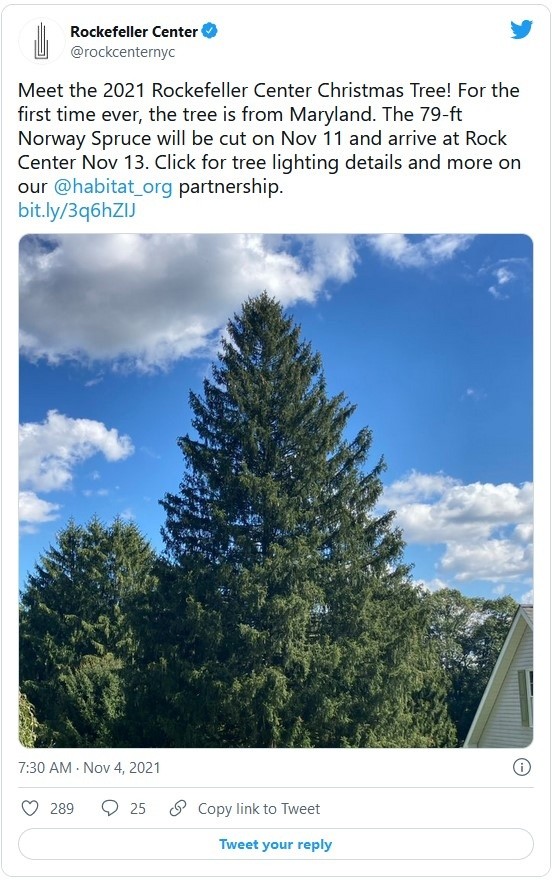 El esperado e icónico árbol del Rockefeller Center, símbolo de la Navidad en Nueva York, llegará este año desde Maryland para la ceremonia del encendido este 1 de diciembre, una tradición que ya cumple 90 años.Se trata de un "abeto de Noruega" de 24.079 metros de alto, 14 metros de ancho y 12 toneladas y, contrariamente a otros años en que suele proceder de Nueva York, Pensilvania o Nueva Jersey, en esta ocasión fue donado por una familia de Elkton, en Maryland.El árbol más famoso de Nueva York será cortado el 11 de noviembre y llegará al Rockefeller Center dos días después para ser adornado con más de 50 mil luces y la estrella de cristal Swarovski, de 408.23 kilos.El abeto podrá ser visitado hasta los primeros días de enero.El pasado año y debido a la pandemia, el encendido se hizo en presencia de sólo un puñado de personas.En 1971, con la tendencia ecológica de cuidar al planeta y los recursos naturales, se decidió reciclar el árbol y desde el 2007 se usan luces LED para el consumo de energía.El primer árbol de Navidad que se instaló en el Rockefeller fue colocado en 1931 por trabajadores de la construcción en el sitio donde se estaba edificando ese centro, y la primera ceremonia formal del encendido tuvo lugar en 1933.JM