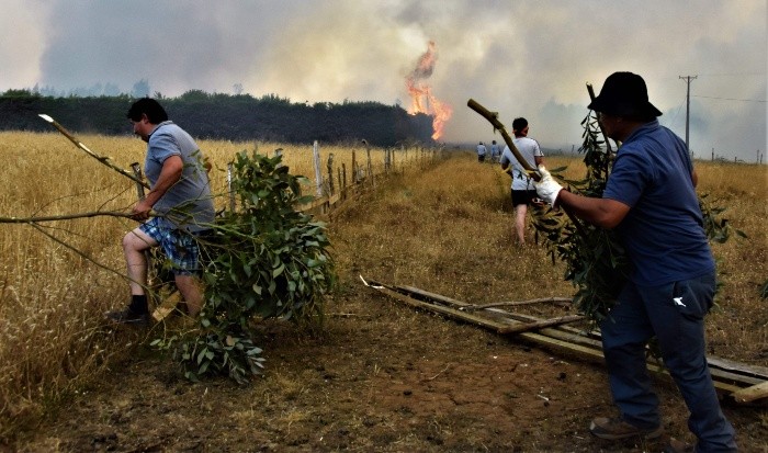 Dos personas muertas, cerca de 40 viviendas destruidas y tres mil 200 hectáreas arrasadas por el fuego han dejado hasta ahora más de un centenar de incendios forestales desatados en el sur de Chile durante el fin de semana, según informó este lunes las autoridades.Los incendios se extienden entre las regiones de Biobío y Los Lagos, en el sur del país, especialmente en La Araucanía, donde ocurrieron las muertes y en la que además un bombero permanece en riesgo vital y más de una veintena de viviendas han sido destruidas.Según el más reciente balance de la Oficina Nacional de Emergencias (Onemi), se declararon en total 108 incendios, de los que 36 continuaban activos en las primeras horas de este lunes, 50 están bajo control y 22 extinguidos.El fuego ha arrasado con mil 900 hectáreas de bosques, plantaciones y vegetación en La Araucanía; 800 en el Biobío; 290 en la región de Los Ríos y 240 en la de Los Lagos, según el informe.En La Araucanía los mayores daños corresponden a los municipios de Carahue y Cholchol, donde se registraron las dos víctimas fatales y se han quemado 510 hectáreas.En Cholchol murió Samuel Huilcapán, de 94 años, quien fue encontrado calcinado por familiares cuando fueron a verlo, y más tarde pereció José Miguel Huaichapán Collío, de 80 años, quien sufrió lesiones múltiples mientras combatía un incendio que amenazaba su vivienda.Este último fue rescatado con vida por vecinos, pero murió posteriormente en el hospital de Temuco, la capital regional.En el sector, 38 personas permanecen albergadas tras la destrucción de once viviendas, mientras en el vecino municipio de Nueva Imperial, donde el fuego ha consumido 150 hectáreas de vegetación y destruido cinco viviendas, un bombero resultó herido al golpearlo el canastillo de un helicóptero que combatía la emergencia.En Carahue, cuatro viviendas, un colegio y una sede social quedaron destruidas en un incendio que afectó a unas 350 hectáreas de plantíos y vegetación.En La Araucanía, hay 91 personas damnificadas, dijo a los periodistas la directora regional de Emergencia, Janet Medrano, quien puntualizó que en el combate contra el fuego están desplegados en la zona siete aviones y catorce helicópteros."Contamos con 21 aeronaves trabajando ya en el territorio, y con 40 brigadas conformadas por personal de Conaf (Corporación Nacional Forestal) y del Ejército", manifestó por su parte el director regional de la Conaf, Julio Figueroa.El presidente Sebastián Piñera, que durante esta jornada visitó la zona, anunció que el Ejecutivo aplicará la ley de Seguridad Interior del Estado -que tipifica, entre otros, delitos contra la soberanía nacional y la seguridad exterior del Estado- a todas las personas que causen incendios forestales."A los que están provocando incendios de forma intencional, les advertimos que les vamos a aplicar, en todos y cada uno de los casos, la ley de Seguridad Interior del Estado", advirtió.JM