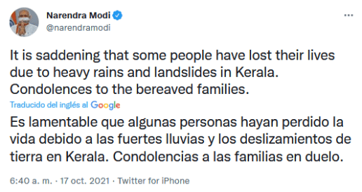 Al menos 19 personas murieron y alrededor de una decena continúan desaparecidas por los efectos de las fuertes lluvias en el estado de Kerala, en el sur de la India, donde han provocado inundaciones y deslizamientos de tierra.Las precipitaciones de los últimos días han causado este fin de semana al menos 19 muertos en los distritos meridionales de Idukki y Kottayam, debido sobre todo a deslizamientos de tierra, afirmó este domingo una fuente del Departamento de Información de Kerala.Además, anotó, "más gente se encuentra desaparecida, aunque no hay un número exacto, alrededor de diez", entre los que se encuentra un niño de un año.La Fuerza Nacional de Respuesta a Desastres (NDRF) continúa las intensas labores de rescate, sobre todo en el área afectada por un deslizamiento de tierra en Idukki, según informaron en Twitter, donde mostraron imágenes del corrimiento que arrasó lo que encontró a su paso hasta llegar a un río en la ladera de una montaña.Durante las operaciones en el estado han rescatado a al menos 33 personas, entre ellas siete niños, detalló el director general de la NDRF, Satya Pradhan.De acuerdo con el Departamento de Meteorología de la India la situación está mejorando en la región, y en los distritos más afectados por las precipitaciones se ha reducido el código de alerta desde el sábado de rojo (lluvia fuerte o extremadamente fuerte) a amarillo (lluvia moderada) el domingo.El primer ministro indio, Narendra Modi, lamentó en un mensaje en Twitter "que algunas personas hayan perdido la vida debido a las fuertes lluvias y los deslizamientos de tierra en Kerala", y trasladó su "condolencias a las familias" de las víctimas.Los corrimientos de tierra y las inundaciones son habituales en la época del monzón en el Sur de Asia, donde además de víctimas, se producen importantes daños materiales, pero el estado de Kerala ha resultado particularmente afectado durante los últimos años.Entre mayo y agosto de 2018 las lluvias torrenciales, que provocaron las peores inundaciones en cerca de un siglo en Kerala, causaron al menos 370 muertes, mientras que un año después las fuertes precipitaciones dejaron en la región 76 fallecidos.GC