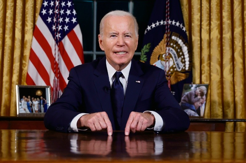 El presidente de Estados Unidos, Joe Biden, advirtió ayer que si Hamás y el líder ruso, Vladimir Putin, no pagan por el dolor que han provocado en Israel y Ucrania, respectivamente, podría desencadenarse más "caos" y "destrucción" en el mundo."La historia nos ha enseñado que cuando los terroristas no pagan por su terror y los dictadores no enfrentan el precio de su agresión, causan más caos, muerte y destrucción", expresó Biden en un discurso desde el Despacho Oval de la Casa Blanca.Biden usó el discurso como una oportunidad para intentar convencer al pueblo estadounidense de que su país debe desempeñar un papel fundamental en la defensa de la democracia en todo el mundo, una idea que se inscribe en el "excepcionalismo estadounidense" que guía la política exterior del Presidente.De hecho, en su discurso, reiteró la noción de que el mundo se encuentra en un "punto de inflexión" en el que se está librando una lucha entre las democracias del mundo, lideradas por Estados Unidos y defensoras del orden liberal internacional establecido tras la Segunda Guerra Mundial, frente a modelos autoritarios como China y Rusia."Hamás y Putin representan amenazas diferentes, pero comparten algo en común: ambos desean aniquilar por completo a democracias vecinas", afirmó el líder estadounidense.Biden afirmó que la existencia de Hamás, que está considerado como un grupo terrorista, es aniquilar el Estado de Israel y dijo: "Hamás no representa al pueblo palestino. Hamás utiliza a civiles palestinos como escudos humanos y las familias palestinas inocentes están sufriendo enormemente por ello".Mientras tanto, Biden señaló que Putin niega a Ucrania el derecho a existir como un Estado independiente y advirtió que si Occidente deja de respaldar a Kiev, el conflicto podría extenderse a otras partes de Europa, incluso a aliados de la OTAN como Polonia."Defenderemos cada pulgada de la OTAN", reafirmó Biden, usando palabras que ya ha empleado otras veces para mostrar su respaldo al principio de defensa colectiva de la Alianza.Dirigiéndose a los estadounidenses que lo veían desde sus hogares, Biden explicó que, aunque estos conflictos parecen estar "muy lejos", son relevantes porque tanto los aliados como los adversarios de Estados Unidos están observando cómo reacciona la nación.EFE Decenas de refugiados desplazados por los bombardeos en el Norte de la Franja de Gaza fueron atendidos y alojados en casas de campaña por el Programa de las Naciones Unidas para el Desarrollo en Khan Younis, al Sur de la zona de conflicto. Con el aumento de las tensiones en Medio Oriente, las fuerzas estadounidenses en la región enfrentan mayores amenazas. Un buque de guerra de la Armada derribó ayer un misil que presuntamente iba dirigido hacia Israel y bases estadounidenses en Irak y Siria fueron repetidamente blancos de ataques con drones.El USS Carney, un destructor de la Armada emplazado en el Norte del Mar Rojo, interceptó ayer tres misiles de crucero y varios drones que fueron lanzados por las fuerzas hutíes en Yemen. Las acciones del Carney representaron potencialmente los primeros disparos del Ejército estadounidense en defensa de Israel en este conflicto.El general de brigada Pat Ryder, secretario de prensa del Pentágono, dijo a los periodistas que los misiles se dirigían "potencialmente" hacia Israel, pero que Estados Unidos no había terminado de evaluar cuál era su objetivo.Un funcionario estadounidense dijo que no creen que los misiles, que fueron derribados sobre el agua, estuvieran dirigidos al buque de guerra estadounidense. El funcionario habló bajo condición de anonimato para hablar de operaciones militares.AP El discurso de Joe Biden duró unos 15 minutos y fue transmitido en vivo por las principales cadenas de televisión del país. Israel bombardeó ayer la Franja de Gaza, incluso en el Sur, a donde pidió a los palestinos que se desplazaran, mientras que el ministro de Defensa israelí dijo a su infantería que se prepare para invadir, aunque no precisó fecha.El Ejército israelí ha atacado Gaza ininterrumpidamente en represalia por un ataque de Hamás en el Sur de Israel. Incluso después de que Israel pidiera a los palestinos que evacuaran el Norte de Gaza y huyeran hacia el Sur, sigue bombardeando todo el territorio, aumentando el temor en los habitantes de que territorio es seguro.Ayer militantes palestinos dispararon cohetes contra Israel desde Gaza y Líbano, y las tensiones se recrudecieron en Cisjordania, territorio palestino ocupado.En un ardoroso discurso dirigido a los soldados de infantería israelíes en la frontera con Gaza, el ministro de Defensa, Yoav Gallant, instó a las fuerzas a "organizarse y estar preparadas" para una orden de incursión. Israel ha concentrado decenas de miles de soldados a lo largo de la frontera."Puede que tardemos una semana, un mes o dos meses en destruirlos", añadió, refiriéndose a Hamás.AP El ministerio del Interior del Gobierno de Hamás afirmó ayer que muchos desplazados que se encontraban en una iglesia en Gaza murieron y otros resultaron heridos por un bombardeo israelí.En un comunicado, señaló que el bombardeo causó "muchos mártires y heridos" en la iglesia griega ortodoxa de San Porfirio.Testigos señalaron que el ataque parecía tener como objetivo un lugar cercano.Interrogado el Ejército israelí dijo que estaba verificando las informaciones.Según testigos, el bombardeo dañó una fachada de la iglesia y derrumbó el lugar adyacente. Muchos heridos fueron evacuados al hospital, agregaron.San Porfirio, la más antigua iglesia todavía activa en el enclave palestino, situada a la sombra de un minarete, se encuentra en el barrio histórico del Viejo Gaza, donde, según la tradición, están las reliquias de esta ermita y del obispado de Gaza del Siglo V.La iglesia está situada no lejos del hospital Al Ahli, donde un disparó de cohete causó 500 muertos el martes por la noche, de acuerdo a las autorida