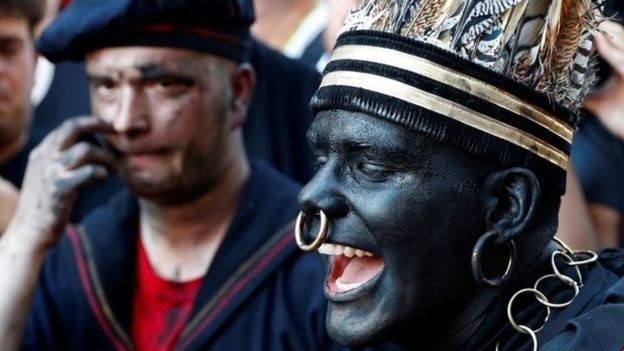 La imagen, publicada este miércoles por la revista Time, muestra al primer ministro de Canadá con la cara y manos pintadas de negro en una fiesta de disfraces rodeado de cuatro mujeres.La foto corrió como la pólvora y llevó al propio Trudeau, quien buscará su reelección en las elecciones de octubre, a calificarla de "racista" y asegurar que estaba "profundamente arrepentido".Ante preguntas de los medios, explicó que en el año 2001 posó disfrazado de Aladino durante una fiesta basada en "Las mil y una noches" en la prestigiosa escuela privada de West Point Grey de Vancouver, donde trabajaba como profesor.En la imagen aparece sonriente, vestido con ropajes orientales y un turbante en la cabeza. Trudeau, quien entonces tenía 29 años, es el único en la foto que tiene la piel oscurecida."No debería haberlo hecho. Debí haber sabido que no era adecuado, pero lo hice y realmente lo siento", declaró Trudeau, quien subrayó que no lo consideró "racista en su momento".Trudeau también reconoció a los periodistas que esta no fue la única ocasión en la que se disfrazó y se "maquilló" como una persona negra."Cuando estaba en la escuela secundaria me disfracé en una actuación en la que canté 'Day-O' con maquillaje", explicó.La foto causó una gran polémica en Canadá, donde el 21 de octubre se celebran elecciones generales y Trudeau intentará ser reelegido como primer ministro.Pese al revuelo causado, el mandatario se negó a contestar si creía que debería presentar su dimisión después de que varios candidatos a diputados para las próximas elecciones renunciaran tras descubrirse posiciones racistas en antiguos mensajes de sus redes sociales.Andrew Scheer, líder de la oposición conservadora en Canadá, dijo que la imagen era racista en 2001 y lo es ahora."Lo que los canadienses han visto es a alguien con una falta total de juicio e integridad y a alguien que no está en condiciones de gobernar este país", dijo.Por su parte, el líder del Nuevo Partido Demócrata, Jagmeet Singh (quien es de origen sij y siempre viste con un turbante), dijo que la imagen era "preocupante" e "insultante"."Cada vez que vemos personas pintándose la cara de negro o marrón, se están burlando de alguien por lo que vive y por sus experiencias vividas", declaró.El Consejo Nacional de Musulmanes Canadienses también mostró su más profundo rechazo por la imagen."Ver al primer ministro con la cara marrón/negra es profundamente triste. Pintarse la cara es reprobable, y recuerda una historia de racismo y una mitología orientalista que es inaceptable", dijo su director ejecutivo Mustafa Farooq."Blackface"La imagen fue especialmente criticada por estar protagonizada por Trudeau, quien ha hecho de las políticas progresistas y a favor de la igualdad uno de sus estandartes.Las encuestas de opinión indican que las elecciones del próximo mes de octubre serán un objetivo difícil para el actual primer ministro, quien busca ser elegido para un segundo mandato.No es la primera vez que un político se ve envuelto en una polémica similar. Ralph Northam, gobernador de Virginia en EE.UU., admitió haberse pintado de negro en el pasado para emular a Michael Jackson.Pintarse la cara de negro o marrón, conocido en inglés como blackface o brownface, es considerado en EE.UU. y Canadá una práctica sumamente racista por invocar una época de discriminación y creerse que fomenta estereotipos y ridiculiza a la población negra.***Ahora puedes recibir notificaciones de BBC Mundo. Descarga la nueva versión de nuestra app y actívalas para no perderte nuestro mejor contenido.
