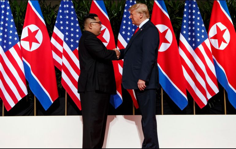 El líder de Corea del Norte, Kim Jong-un, y el presidente de Estados Unidos, Donald Trump, están de acuerdo en la importancia de ir "paso a paso" y adoptar acciones "simultáneas" para lograr la paz y la desnuclearización en la península de Corea, informaron hoy los medios norcoreanos.Tras la histórica primera cumbre entre ambos países en Singapur del martes, la agencia estatal KCNA mencionó hoy en un extenso comunicado la intención de Trump de suspender las maniobras conjuntas con Seúl mientras continúa el "diálogo de buena voluntad" entre Washington y Piongyang.Tras expresarle "que estaba complacido de encontrarse cara a cara con el presidente Trump", Kim agradeció su disposición de resolver sus diferencias "de forma realista mediante el diálogo y negociaciones, lejos de la hostilidad del pasado", detalló KCNA.Hubo un debate "amplio y en profundidad sobre el establecimiento de nuevas relaciones entre la RPDC (República Popular Democrática de Corea, nombre oficial de Corea del Norte) y Estados Unidos y la construcción de un mecanismo de paz permanente y duradera.Para lograr dicho objetivo, así como la desnuclearización de la península, "los dos países deberán comprometerse a abstenerse de hostigarse, y tomar medidas legales e institucionales para lograrlo", le transmitió Kim a Trump, según la agencia norcoreana.KCNA también habló de la declaración conjunta que ambos líderes firmaron, en la que Estados Unidos ofrece garantías de seguridad a Corea del Norte, y aseguró que Washington ha ofrecido "levantar las sanciones en contra (de Piongyang) junto con el avance en la mejora de la relación mutua a través del diálogo y la negociación"."Kim Jong-un aclaró la postura de que si Estados Unidos toman medidas genuinas para construir confianza a fin de mejorar la relación entre la RPDC y Estados Unidos, la RPDC, también, puede seguir adoptando medidas de buena voluntad acorde con ellas", dijo la agencia norcoreana.El medio estatal se hizo eco, además, de la invitación que Kim hizo a Trump para visitar Piongyang y de la invitación del presidente de Estados Unidos a Kim para visitar la Casa Blanca, que en una rueda de prensa en la víspera afirmó que ocurriría en el momento oportuno.El principal diario norcoreano, el Rodong, también recogió hoy el encuentro entre los líderes en una extensa cobertura que abría en portada con cinco fotografías de Kim y Trump estrechándose la mano y en sus múltiples reuniones durante la cumbre, que se prolongaron más de cuatro horas.La cumbre de Singapur fue la primera entre mandatarios de ambos países tras casi 70 años de confrontación y 25 de negociaciones fallidas y tensiones por el programa atómico norcoreano. SA