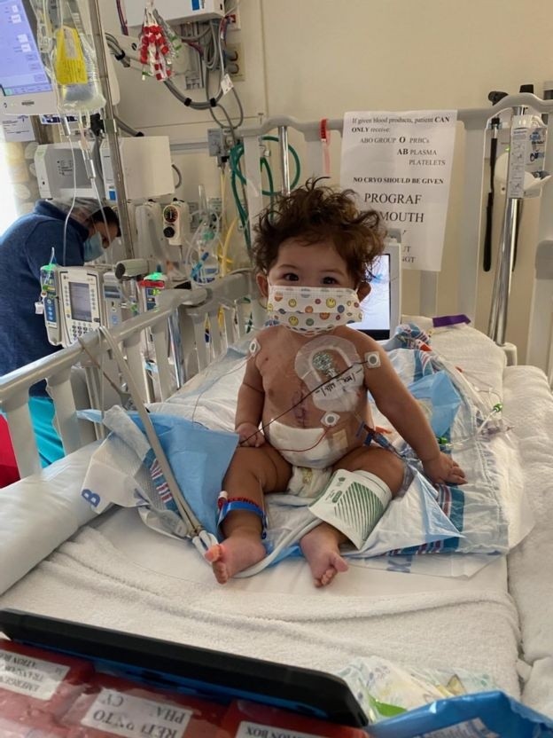 Alexandra Lovo López tenía poco más de 4 meses cuando, el 19 de marzo, en pleno auge de la pandemia de covid-19, debió ser hospitalizada en Nueva York.La ciudad era entonces uno de los epicentros de la enfermedad causada por el nuevo coronavirus.Poco tiempo después de nacer, la bebé había sido diagnosticada con cardiomiopatía dilatada, un debilitamiento del músculo cardíaco que reduce su capacidad de bombear sangre.Luego de intentar sin éxito tratar el problema con medicamentos, los médicos constataron que la niña necesitaría un trasplante de corazón para sobrevivir.Alexandra fue entonces transferida al hospital infantil Kravis, parte de la red del hospital Monte Sinaí en Nueva York."En algunos niños, la cardiomiopatía dilatada es leve y puede ser tratada con medicamentos. Pero hay casos más extremos como el de Alexandra", dijo a BBC News Brasil la directora médica de trasplantes cardíacos pediátricos del hospital, Lauren Glass."Creemos que sin un trasplante ella no habría vivido mucho", afirmo la médica.En los meses siguientes, la niña pasó por una larga espera hasta conseguir un donante compatible y finalmente recibir el nuevo corazón.Glass destacó que realizar una cirugía de esta magnitud en una bebé ya es complejo en tiempos normales.Pero Alexandra, su familia y el equipo médico debieron superar varios obstáculos adicionales debido a la pandemia."No podíamos esperar", le dijo a BBC News Brasil la madre de la niña, Victoria López, de 23 años, sobre el diagnóstico de su única hija."Cuando dijeron que su corazoncito estaba muy grande y delicado y precisaba un trasplante, eso me dolió mucho", recordó la madre.Alexandra estaba muy enferma cuando llegó al hospital, según Glass."Ella tenía dificultad para respirar y baja presión sanguínea. Tenía un tubo de respiración y necesitaba muchos medicamentos para permanecer sedada. No podía estar despierta porque eso sería simplemente demasiada presión par su cuerpo", afirmó la médica.Al mismo tiempo, el equipo médico de Monte Sinaí estaba sobrecargado por la pandemia. Muchos pediatras habían sido transferidos en forma temporaria a tratar adultos con covid-19.Una semana después de llegar al hospital, Alexandra fue sometida a una cirugía apara implantar un dispositivo de asistencia ventricular llamado "Berlin heart" o "corazón de Berlín", que ofrece apoyo mecánico al corazón, sustituyendo algunas funciones del órgano y ayudándolo a bombear sangre.El dispositivo ayudó a mantener a Alexandra con vida mientras los médicos buscaban un donante compatible.Pero la operación, según los médicos, dejó a la niña "extremadamente vulnerable" a infecciones, por lo que el equipo multidisciplinar responsable de su tratamiento en la unidad de cuidados intensivos tuvo que redoblar la vigilancia, en momentos en que Nueva York registraba miles de nuevos casos diarios de covid-19.Incluso antes del coronavirus, encontrar un donante compatible para un trasplante de corazón en un bebé como Alexandra solía llevar varios meses o hasta un año, según Glass.La médica explicó que varios aspectos debían ser tomados en cuenta, como el tamaño del órgano, que no puede ser ni mucho mayor ni mucho menor que el del receptor.El 9 de julio, cuatro meses después de que Alexandra llegara al hospital infantil Kravis, el equipo médico halló un corazón para la niña. Pero había un problema: el donante tenía un tipo de sangre incompatible.Para permitir que Alexandra pudiera recibir el trasplante sin alto riesgo de rechazo, la niña debió recibir antes varias transfusiones sanguíneas."Inmediatamente antes del trasplante, debimos extraer su sangre y sustituirla por una sangre diferente, lo que nos permitió retirar algunos de los anticuerpos que normalmente podrían atacar un corazón que viene de una persona con un tipo sanguíneo diferente", señaló la médica.Glass destacó que el banco de sangre del hospital tuvo que trabajar sin parar con el fin de garantizar el éxito de la operación.Los médicos debieron realizar además varios tests al nuevo corazón para garantizar que el donante no estaba infectado con covid-19.Luego de constatar que el órgano era seguro, el equipo de expertos finalmente pudo realizar el trasplante.La cirugía fue considerada un éxito. Los médicos aseguran que Alexandra se está recuperando bien y que no hay ningún indicio de rechazo del nuevo corazón."Quedamos muy satisfechos. Su nuevo corazón comenzó a funcionar bien inmediatamente", señaló el director quirúrgico de trasplantes cardíacos pediátricos, Raghav Murthy, quien lideró junto a Glass el equipo a cargo del tratamiento.Ahora, pocos días antes de cumplir 10 meses de edad y después de pasar la mitad de su vida en el hospital, la niña se fue a su casa para estar al lado de su madre, de su padre, Santos Lovos, y del resto de la familia, en el barrio de Queens, en Nueva York.La niña aún debe ser monitoreada y requerirá diferentes terapias. Como era muy pequeña cuando fue internada y pasó la mayor parte de su vida en cama y sedada, Alexandra no tuvo el tiempo necesario para desarrollar las mismas habilidades que otros bebés de su edad."Ella aún no puede caminar y aún no puede comer por la boca", contó la madre.Pero los médicos y la familia esperan que la niña supere pronto esos desafíos y recupere el tiempo perdido.Al igual que otros trasplantados, Alexandra deberá tomar medicamentos el resto de su vida para evitar que su organismo rechace el nuevo corazón. Pero Glass afirmó que luego de un año, el número de medicamentos disminuye."Ella tiene una apariencia óptima. Sonríe, juega, interactúa", observó la médica. "El objetivo es que tenga una vida normal, con algunas visitas al médico de vez en cuando".Durante su larga estadía en el hospital, la bebé conquistó a médicos y enfermeros."Estaban muy apegados a Alexandra, la trataron con mucho cariño", recordó la madre.Glass relató que, en 