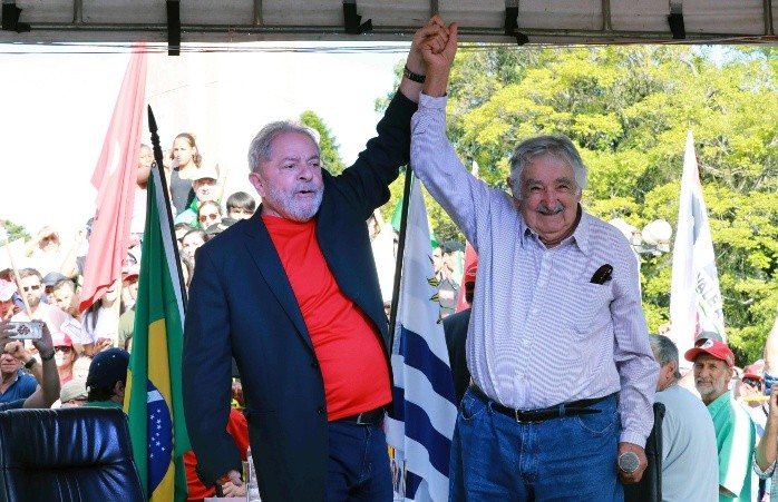 Comenzó la jornada protagonizando una confrontación entre manifestantes y la terminó arropado por tres expresidentes latinoamericanos: Luiz Inácio Lula da Silva lanzó ayer su caravana por el sur del Brasil arrastrando la tensión que rodea a los que podrían ser sus últimos días antes de entrar en prisión.Lo que en principio iba a ser un encuentro con el exmandatario uruguayo José Mujica (2010-2015) en la fronteriza Santana do Livramento acabó siendo una reunión de exlíderes de la izquierda regional, a la que se sumaron su sucesora Dilma Rousseff (2011-2016) y el exdirigente de Ecuador Rafael Correa (2007-2017).Ante ellos y los centenares de partidarios que se agolpaban en la plaza que ejerce de pacífica frontera en esta ciudad que vive en 'portuñol', y se llama Rivera del lado uruguayo y Santana del brasileño, Lula reiteró que no piensa parar ahora."Querido Mujica, usted sabe que estoy siendo amenazado con la prisión. Estoy aquí en la frontera y podría dar un saltito a Uruguay, pero no voy a hacerlo. ¿Sabe por qué? Porque estoy tranquilo con mi inocencia y quienes tendrán que salir del país un día son ellos", aseguró en referencia a sus enemigos.Y, entre los vítores bajo el sol de sus partidarios, el mismo Lula que el viernes afirmó que si se atreven a detenerle se convertirá en un preso político, aún fue más lejos."Están las huellas del gobierno estadounidense en todo este proceso mentiroso que está ocurriendo en Brasil", lanzó enérgico el exlíder sindical de 72 años, vestido con americana azul y camisa roja.Sentado a su lado, pero ya en territorio uruguayo, le escuchaba tranquilo Mujica, intercalando los largos sorbos al mate con sus intervenciones a preguntas de Lula, que se refirió a él como una de sus fuentes de inspiración.Los elogios no evitaron, sin embargo, que el carismático exguerrillero de 82 años usara su habitual hablar franco para pedirle un ejercicio de autocrítica a la izquierda regional e incluso al propio Partido dos Trabalhadores (PT)."Los cambios no se pueden respaldar en una figura sola, porque mañana no está la figura y la lucha continua. ¡Hay que hacer partido! Suerte que tienen a Lula, pero no lo tendrán eternamente y la lucha dura", advirtió Mujica.Presidente de Brasil entre 2003 y 2010, el exlíder sindical vuelve a ser el favorito para las elecciones de octubre, pero la admisión de su candidatura parece improbable, después de haber sido condenado en enero en segunda instancia a doce años y un mes de cárcel por corrupción pasiva y lavado de dinero.La corte lo halló culpable de haber recibido un apartamento de lujo en un balneario paulista a cambio de favorecer contratos de la constructora OAS en Petrobras.Durante su gira por el sur, que se prolongará hasta el 28 de marzo, un tribunal de apelación podría pronunciarse sobre los últimos recursos que, de ser rechazados, podrían conducir a su encarcelamiento inmediato.Lula, que enfrenta otras seis causas judiciales, se declara inocente en todas y denuncia un acoso judicial para impedir que vuelva al poder.Pero, aunque implícito durante todo el debate, la compleja situación jurídica de Lula solo se tocó en la parte final de la charla entre los exmandatarios."Mi problema personal es pequeño ante el que aflige a millones de trabajadores brasileños que ya perdieron el empleo", afirmó.Inspirada en las caravanas con las que recorrió el país en el pasado, esta es la cuarta gira proselitista que lanza Lula en los últimos meses, tras sus recorridos por el empobrecido noreste, bastión tradicional del PT, y su paso por Minas Gerais y Rio de Janeiro.Pero ninguna había tenido un inicio tan convulso como el vivido este lunes en Bagé, donde unos 200 productores rurales, con banderas de Brasil y sus tradicionales atuendos 'gaúchos', hicieron rugir sus tractores frente a la universidad Unipampa de esta localidad del estado de Rio Grande do Sul.Un grupo de policías armó un cordón para separarlos de otro centenar de simpatizantes del PT y de movimientos de izquierda que aguardaban la llegada del Lula al son de acordeones.Ambos lados se increparon. Unos gritaban "Lula, ladrón, tu lugar es la prisión" y los otros respondían: "Lula, guerrero, del pueblo brasilero".El cortejo de la caravana, formado por varios autobuses blancos, entró en la universidad bajo escolta policial y de simpatizantes del PT.El recorrido por los tres estados de la próspera región Sur llevará al expresidente por 19 ciudades hasta el acto final del día 28 en Curitiba, centro de operaciones del juez anticorrupción Sergio Moro y de los fiscales de la Operación Lava Jato con los que Lula mantiene una lucha frontal.