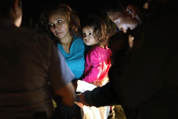 Una poderosa imagen de una niña hondureña que llora mientras agentes estadounidenses inspeccionan a su madre en Texas, tras cruzar la frontera desde México, se volvió un símbolo de la política estadounidense de separar a los menores migrantes de sus padres que llegan ilegalmente.La revista Time retomó la fotografía, que se volvió viral, para ilustrar la portada de su próxima edición bajo el título "Welcome to America" ("Bienvenido a Estados Unidos"). La menor se ve frente al presidente Donald Trump, impulsor de la medida antiinmigrante que le valió una oleada de críticas.El autor de la imagen original, John Moore, tomaba fotografías de un operativo de la Patrulla Fronteriza en McAllen, Texas, junto a la frontera con México, el pasado 12 de junio.Según contó Moore a Time, los agentes detectaron a un grupo de unos 20 migrantes que habían cruzado el río Bravo.Entre ellos venía una mujer cargando a su hija y no la soltaba, pues la niña quería que la sostuviera todo el tiempo.La madre le contó al fotógrafo que venían de Honduras y habían viajado por un mes. Cuando los agentes la iban a revisar, le pidieron que bajara a la niña.Y justo al tocar el piso, la menor de dos años comenzó a llorar. Momentos después, madre e hija subieron a un vehículo y los agentes fronterizos se las llevaron."Esta (foto) fue difícil para mí. Tan pronto como terminó, las subieron a una camioneta. Tuve que parar y respirar profundamente. Lo único que quería hacer, era levantar a la niña, pero no podía", dijo.Y es que Moore, ganador de un premio Pulitzer y con una trayectoria en fotografiar migrantes en la frontera, sabía que serían llevadas a un centro de procesamiento donde los niños suelen ser separados de sus padres.Aunque Trump cedió ante la presión local e internacional y ordenó ayer detener la separación de los niños inmigrantes de sus padres detenidos en la frontera, no resuelve la situación de los más de dos mil 300 niños que ya han sido separados pues el Gobierno no contempla facilitar la reunificación familiar.IM