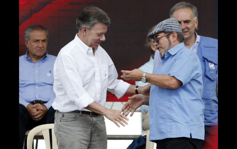 MESETAS, COLOMBIA (27/JUN/2017).- El presidente Juan Manuel Santos declaró este martes que la paz en Colombia es "irreversible", durante un acto en el que se dio por terminado el desarme de la guerrilla FARC, la más antigua de América."Hoy, al depositar las armas que tenían con ustedes en los contenedores de las Naciones Unidas, los colombianos y el mundo entero saben que nuestra paz es real y es irreversible", dijo Santos durante un acto de cierre del desarme en Mesetas, en el centro del país."No somos más un pueblo enfrentado entre sí, no somos más una historia de dolor y de muerte en el planeta, somos un solo pueblo y una sola nación avanzando hacia el futuro dentro del cauce bendito de la democracia", afirmó el presidente.El jefe de Estado añadió que el país está hoy emocionado al constatar "el fin de esta guerra absurda que no sólo duró más de cinco décadas", sino que dejó más de ocho millones de víctimas, entre ellas "más 220 mil compatriotas muertos"."Lo que celebramos hoy los colombianos es que armas que alguna vez se levantaron para atacarnos entre nosotros serán guardadas y selladas en contenedores a cargo de las Naciones Unidas", agregó el presidente y Premio Nobel de Paz.Santos tomó la palabra al máximo jefe de las FARC, Rodrigo Londoño, alias "Timochenko", cuando en su discurso este dio el adiós a las armas, al tiempo que pidió que a partir de hoy "debe cesar toda persecución política en Colombia"."En adelante, como usted lo ha dicho, esa -su palabra- será su única arma", manifestó.El presidente añadió: "Quedan aún deberes recíprocos que ustedes y el Estado tenemos que cumplir para que este acuerdo de paz que hemos alcanzado se traduzca en una paz justa, estable y duradera para nosotros y todas las generaciones por venir".Para Santos, la dejación de las armas de las FARC "es el símbolo del nuevo país que podemos ser y estamos comenzando a ser, un país donde las oportunidades lleguen a todos los colombianos", en especial aquellos de las zonas más apartadas, "donde el Estado no podía llegar por causa del conflicto armado"."Estemos a la altura de la paz que hemos logrado. Estemos a la altura de los sueños de nuestros hijos, que hoy nos miran con ojos de esperanza. Estemos a la altura de la historia. No dejemos perder este momento, ni este logro que es de todos, de todos los colombianos", concluyó el presidente.