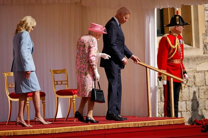 Una sonriente Isabel II recibió este domingo en el castillo de Windsor (cerca de Londres) al presidente de Estados Unidos, Joe Biden, y su esposa, Jill, como colofón a su visita al Reino Unido para participar en la cumbre del G-7 en Cornualles (suroeste de Inglaterra).Procedente de la bahía de Carbis, donde hoy concluyó la reunión política, la pareja llegó a las 15.55 GMT en el helicóptero Marine One a la residencia de la Reina en el condado de Berkshire, donde fueron saludados por la monarca, que les esperaba de pie en una carpa en el cuadrilátero de césped enfrente del castillo.Vestida de un rosa primaveral con sombrero a juego, Isabel II, de 95 años, escuchó con el presidente, de 78, y la primera dama, de 70, el himno de Estados Unidos, después de departir juntos durante varios minutos.Los tres parecían relajados y en momentos intercambiaron sonrisas, en una visita que destaca por carecer de la tensión que marcó las del ex presidente estadounidense Donald Trump, que visitó a la Reina, con su esposa Melania, durante una visita de Estado en 2019 y otra oficial en 2018.Tras entrevistarse con Biden el pasado jueves, el primer ministro británico, el conservador Boris Johnson, calificó las relaciones con el nuevo inquilino de la Casa Blanca como "un soplo de aire fresco", lo que pareció trasladarse a Windsor.El presidente, investido el pasado enero, acompañó al comandante de la Guardia real, el mayor James Taylor, y al general Christopher Ghika en la tradicional inspección de tropas, un acto que, antes de retirarse de la vida pública en 2017, hubiera dirigido el príncipe Felipe, fallecido a los 99 años el pasado 9 de abril.Después de presenciar junto a Isabel II y la primera dama un desfile del primer batallón de guardias granaderos de la Compañía de la Reina, los tres entraron al castillo a fin de degustar un té a la inglesa, según la agenda protocolaria enviada por el palacio de Buckingham (principal residencia real en Londres).Biden, que realiza su primer viaje internacional, es el decimotercer presidente de EU que Isabel II conoce de los catorce que han servido durante sus 69 años de reinado, con la excepción de Lyndon Johnson.Durante su actual visita a este país, los Biden ya disfrutaron de la compañía de la jefa del Estado británico el pasado viernes, en la recepción que ésta ofreció a los líderes del Grupo de los Siete (economías más desarrolladas) en el centro de ecología Proyecto Edén de Cornualles.Tras el acto con su majestad, viajarán a Bruselas (Bélgica) para que el presidente participe el lunes en la cumbre de la OTAN y el martes en otra con la Unión Europea, antes de viajar a Ginebra (Suiza) para mantener el miércoles una reunión con el presidente ruso, Vladimir Putin.GC