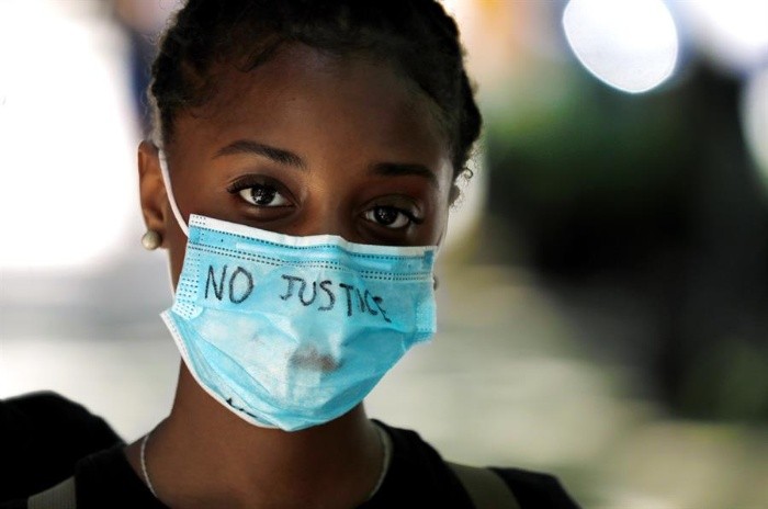 Una mujer lanzó una bomba molotov al interior de un vehículo de la policía ocupado por cuatro agentes en Nueva York, durante una manifestación en protesta por la muerte de George Floyd, un estadounidense negro muerto a manos de uniformados, dijo el sábado a AFP la policía neoyorquina.La mujer, de 27 años, lanzó el cóctel molotov contra el vidrio trasero de la van, que se quebró con el golpe, indicó una portavoz, pero los cuatro policías tuvieron tiempo de salir del vehículo sin sufrir daños.Los policías detuvieron de inmediato a la mujer, procedente del norte del estado de Nueva York, acusándola de "intento de asesinato de oficial de policía". También arrestaron a su hermana, que intentaba interponerse."Es un milagro que ningún oficial haya muerto" durante las manifestaciones que tuvieron lugar el viernes en Nueva York, comentó el jefe de policía Dermot Shea durante una rueda de prensa realizada el sábado.Numerosas protestas fueron organizadas jueves y viernes en Nueva York, así como en otras ciudades estadounidenses, para protestar contra la violencia policial contra manifestantes negros tras la muerte de George Floyd cuando estaba siendo arrestado el lunes.Tras una primera manifestación, de relativamente baja concurrencia, en el sur de Manhattan, varios miles de personas se reunieron en la tarde del viernes ante el Barclays Center, una sala de espectáculos de Brooklyn.A lo largo de varias horas, pequeños grupos de manifestantes se enfrentaron entonces a la policía, que procedió a más de 200 detenciones, indicó Dermot Shea."Era una manifestación bien preparada, para provocar destrucción y caos", afirmó, aludiendo a las convocatorias lanzadas por las redes sociales.Otras manifestaciones están previstas todo este fin de semana, entre ellas una en Harlem por la tarde del sábado.JM