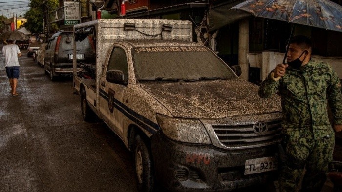 Un volcán en Filipinas expulsó una columna gigante de ceniza y por ello se instruyó la evacuación de al menos 8,000 personas que viven cerca.La montaña Taal, al sur de la capital filipina Manila, tuvo este domingo una erupción que se extendió aproximadamente un kilómetro hacia el cielo.Informes locales señalan que el despertar del volcán también estuvo acompañado de ruidos retumbantes y temblores en las zonas aledañas.Taal es el segundo volcán más activo de Filipinas.Las autoridades del país del Sureste Asiático declararon alerta de nivel 4 (sobre 5) advirtiendo que una "erupción peligrosa" puede producirse en las próximas semanas.El Instituto Filipino de Vulcanología y Sismología también advirtió a los residentes que viven cerca de un posible "tsunami volcánico", mientras que los vuelos fueron suspendidos en el aeropuerto internacional de Manila debido a la ceniza volcánica.Se recomendó a los residentes cercanos a la montaña usar máscaras mientras abandonan el lugar.Uno de los testigos de lo sucedido, quien se encontraba en el popular complejo vacacional de Tagaytay, relató a la agencia de noticias Reuters que estaba almorzando cuando escuchó un ruido retumbante."Vimos el volcán en erupción. Llovió y algunas piedras pequeñas cayeron al suelo", afirmó."No esperaba ver tal espectáculo".Lucy McFadden, una filipina que vive Reino Unido y trabaja para la empresa Philippine Trails indicó que ocho turistas y dos guías, incluido su hermano, estaban en un bote que regresaba del volcán cuando entró en erupción."Unos 30 minutos después de su viaje, el volcán hizo erupción súbitamente. Mi hermano estaba muy asustado", señaló a la BBC.Taal es uno de los volcanes más pequeños del mundo. Ha registrado al menos 34 erupciones en los últimos 450 años.*** Recuerda que puedes recibir notificaciones de BBC News Mundo. Descarga la última versión de nuestra app y actívalas para no perderte nuestro mejor contenido.