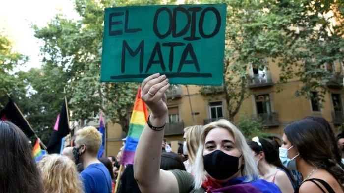 Fue una paliza mortal y quizás también un crimen de odio.La policía de España investiga la muerte la madrugada del sábado de Samuel Luiz, de 24 años, causada por los golpes que recibió de varios agresores cerca de una discoteca.Aunque el motivo del crimen está siendo investigado y todavía no hay detenidos, las denuncias de testigos del hecho hacen que el colectivo LGTB asuma que es un crimen de odio y que a Samuel lo agredieron por ser homosexual.Medios españoles informan que testigos de lo sucedido aseguran que al joven "lo mataron al grito de 'maricón'".Por ello la tarde del lunes hubo manifestaciones en varias ciudades del país en las que prevalecieron los pedidos de justicia y de lucha contra la homofobia."A Samuel lo han matado por ser maricón", fue una de las consignas de esas protestas por la muerte del joven enfermero en la ciudad de La Coruña, en el noroeste de España.En esa ciudad, un grupo de amigos de la víctima, muy afectados, exhibió pancartas en las que se podía leer "Su amor no hacía daño, vuestro odio sí" o "Samu no ha muerto, lo han asesinado".En la concentración de protesta en Madrid, los organizadores leyeron un comunicado en el que dijeron: "A Samuel lo mataron por maricón, lo repetimos tantas veces como haga falta".El presidente del gobierno, Pedro Sánchez, calificó el asesinato como "un acto salvaje y despiadado".Samuel recibió la paliza cerca de una discoteca en la madrugada del sábado en La Coruña.Según algunos testigos, citados en medios locales, uno de los asaltantes le gritó "maricón", por lo que una de las hipótesis de la investigación es que la agresión fuera un crimen de odio.La policía busca ahora esclarecer no sólo quiénes fueron los culpables, sino qué desató la brutal paliza.De acuerdo a lo publicado por medios locales, el hecho sucedió a las 3:00 am (01:00 GMT) del sábado en lo que era la segunda noche de ocio nocturno desde que se levantaron las restricciones por la pandemia en la región de Galicia.Samuel estaba con una amiga fuera de una discoteca y al parecer una videollamada fue el detonante de la agresión.Su amiga Lina, que afirmó estar junto a Samuel en el momento de la agresión, explicó lo sucedido.Mientras estaban haciendo la videollamada, una pareja pasó y el chico pidió que no le grabaran, relató Lina, según el diario local "La Voz de Galicia"."Intentamos explicarle que estaba confundido, que estábamos haciendo una videollamada y enseñándole a una amiga la zona en la que estábamos".Lina entró en la discoteca, donde seguía el resto de amigos, y al salir Samuel ya no estaba allí, sino en una plaza unos metros más alejado, donde se consumó la paliza grupal.Al llegar al lugar "escuché que alguien gritaba maricón de mierda", dijo Lina.Todavía no hay detenidos ni una versión oficial de lo sucedido.La policía de La Coruña trabaja ahora analizando las cámaras de seguridad y realizando interrogatorios de presuntos implicados y de testigos.José Miñones, delegado del gobierno en la región de Galicia, donde se ubica La Coruña, dijo que la homofobia es una de las hipótesis abiertas en la investigación."Pero no se descarta ninguna de las vías en esta primera fase de las pesquisas", a la espera de lo que determine el juzgado que instruye el caso, agregó."Tras tomar declaración a todos los testigos sabremos si se trata de un crimen homófobo o no", dijo Miñones."No está excluida ninguna hipótesis, ni el delito de odio ni cualquier otro", apuntó el ministro español del Interior, Fernando Grande-Marlaska.Los gritos de "maricón" durante el ataque que señala Lina, y el que otros amigos de Samuel den por hecho que la condición sexual del joven tuvo que ver en la agresión han despertado la repulsa y la condena en especial de la comunidad LGBT.Según datos del Ministerio del Interior, en 2019 hubo 278 crímenes de odio relacionados con la orientación sexual o la identidad de género en España, lo que supuso un aumento del 8.6% respecto al año anterior.Ese temor ante el incremento de las agresiones estaba también detrás de las protestas del lunes, protagonizadas ampliamente por el colectivo homosexual."No daremos ni un paso atrás en derechos y libertades. España no lo va a tolerar", escribió en twitter el presidente del gobierno, Pedro Sánchez.*** Recuerda que puedes recibir notificaciones de BBC Mundo. Descarga nuestra app y actívalas para no perderte nuestro mejor contenido.