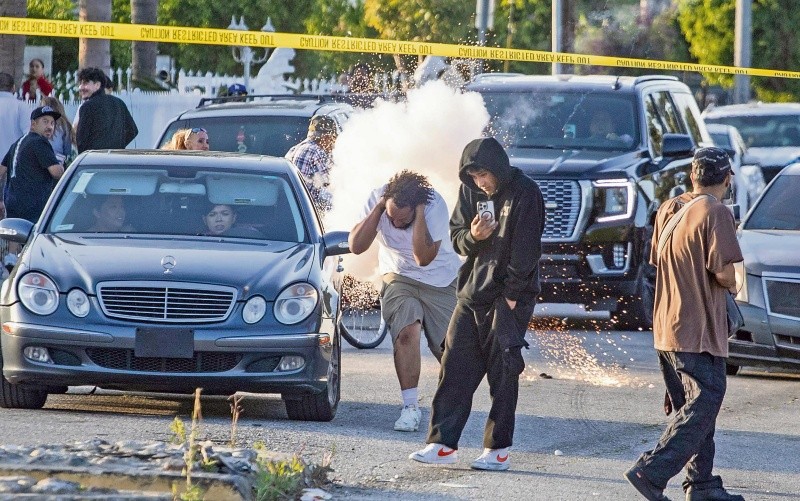 Las redadas migratorias en lugares de trabajo continuaron ayer por segundo día consecutivo en Los Ángeles, donde las autoridades federales se enfrentaron con manifestantes que rechazan los operativos. Y ahora se extendieron a otras zonas, como Manhattan, en Nueva York. Decenas de agentes del Servicio de Control de Inmigración y Aduanas (ICE) y de la Oficina de Aduanas y Protección Fronteriza de Estados Unidos (CBP) allanaron ayer una empresa ubicada en la ciudad de Paramount, donde activistas reportan al menos el arresto de 65 trabajadores, la mayoría mexicanos.La respuesta de la comunidad fue inmediata: cientos de manifestantes se hicieron presentes para bloquear la salida de los vehículos federales. Por más de dos horas, los agentes repelieron a los manifestantes con gases lacrimógenos.Las autoridades utilizaron tácticas militares para dispersar a los manifestantes y sacar a los detenidos en más de dos docenas de camionetas de la CBP, sin distintivos federales.Las consignas de “¡Fuera ICE!” se repitieron a lo largo de la jornada, que registró escenas más caóticas que el viernes, cuando se denunciaron más de siete redadas en lugares de trabajo. También se reportaron autoridades migratorias en supermercados latinos y otros lugares de trabajo, lo que fue difundido en las redes sociales, donde se advertía que “la migra estaba a la caza”.Se registraron varias detenciones de manifestantes, como la de David Huerta, presidente del Sindicato Internacional de Empleados de Servicios de California, quien resultó herido y detenido mientras documentaba una redada.Las autoridades negaron el acceso de abogados y congresistas estadounidenses al centro de detención de ICE, quienes trataban de hablar con los inmigrantes, dijo el congresista Jimmy Gómez. “Hay denuncias de hacinamiento y que los detenidos han estado sin comida, sin agua...”.Jorge Mario Cabrera, vocero de la Coalición por los Derechos Humanos de los Inmigrantes de Los Ángeles, afirma que la administración de Donald Trump está utilizando estas redadas como “una cruel excusa” para bloquear la abogacía en contra de la propuesta de ley en el Senado, que proveería miles de millones de dólares a las autoridades migratorias.La subsecretaria del Departamento de Seguridad Nacional, Tricia McLaughlin, acusó a los manifestantes de agredir a los agentes, pinchar neumáticos y afectar propiedades federales con grafiti. Ayer en Manhattan, al menos cinco personas fueron detenidas cuando una multitud de casi 100 manifestantes insultó a la Policía e intentó bloquear a las autoridades federales que realizaban redadas de inmigración.En los primeros 100 días de la administración de Trump, se documentó que sus antecesores regresaron a más indocumentados a sus países. Según el Instituto Nacional de Migración de México, entre el 20 de enero y el 29 de abril, Estados Unidos deportó a México a 33 mil 311 connacionales. En promedio, la actual política migratoria se traduce en 333 mexicanos regresados al día. En comparación, el Gobierno de Joe Biden deportó casi el doble: 619. Sin embargo, ahora las redadas se han incrementado.
