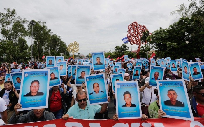 Cientos de opositores marcharon el sábado en la capital nicaragüense desafiando la ofensiva del gobierno de Daniel Ortega, que incluye una nueva ley que los amenaza con hasta 20 años de prisión por "terrorismo"."Libertad", "Justicia", "El pueblo unido, jamás será vencido", coreaban los manifestantes, la mayoría con el rostro cubierto con pañuelos y banderas de Nicaragua en las manos.Las marchas denominadas "Masaya Florecerá" y "Del pueblo para el pueblo, de que se van, se van" fueron convocadas el viernes por la Alianza Cívica, que aglutina a organismos de la sociedad civil.Las movilizaciones partieron de dos puntos distantes de Managua y confluyeron sobre la transitada carretera a Masaya, 30 km al sur de Managua.Masaya fue el último bastión opositor tomado por las fuerzas gubernamentales, en medio de la ola de protestas iniciada el 18 de abril en Nicaragua, en las que han muerto unas 280 personas y dos mil resultaron heridas, según organismos de derechos humanos.La jornada opositora se realizó dos días después de que Ortega denunció que las protestas son parte de un plan golpista para sacarlo del poder, son financiadas desde el exterior y tienen apoyo de sectores internos.La vicepresidenta Rosario Murillo dijo el viernes que "se hará justicia a las víctimas del terrorismo golpista" y que la justicia será "capaz de reconocer los delitos, los crímenes aberrantes y diabólicos" .El parlamento, controlado por el oficialismo, aprobó el lunes una polémica reforma legal que castiga con 15 a 20 años de prisión el terrorismo "Las protestas no se van a acabar, vamos a seguir en las calles exigiendo libertad (...) no nos importa esa ley de terrorismo que acaba de aprobar el gobierno, vamos a seguir luchando por nuestra libertad", dijo una joven de 23 años que se identificó como María."No tenemos miedo, mientras mas seamos en las calles menos nos pueden hacer no hay que tener miedo", exclamó a periodistas una estudiante que no dio su nombre."Queremos poder respirar tranquilos, salir de nuestras casas con tranquilidad (...) la lucha es para que Nicaragua sea libre y hacer justicia por nuestros muertos", manifestó un muchacho de 24 años en la marcha.Al mismo tiempo, simpatizantes del gobierno realizaron una marcha de apoyo a Ortega. "Justicia por los muertos" pedían los manifestantes en su mayoría policías que han perecido enfrentando las protestas opositoras.La marcha en el llamado centro histórico de Managua, era protegida por la policía y se encaminó hacia las instalaciones de la cárcel de El Chipote.En las afueras de esa prisión se encuentran acampando hace días allegados de detenidos en las protestas antigubernamentales, a la espera de que la policía les informe sobre la situación de sus familiares.Organismos de derechos humanos los tuvieron que evacuar para evitar que fueran agredidos por los seguidores de Ortega.Las mujeres, en su mayoría madres de detenidos, se refugiaron en la Catedral de Managua."Vinieron hombres encapuchados con armas a decirnos que si no nos salíamos nos iban a matar, por eso nos venimos acá" a la Catedral, dijo a la AFP una mujer que no quiso revelar su nombre"Dijeron que a punta de balas nos iban a sacar (...) y para proteger nuestras vidas decidimos salir de ahí", declaró la esposa de un exmilitar que estaría detenido por negarse a ser parte de grupos paramilitares."¿Cuándo se va a terminar esta pesadilla?", demandó sin contener el llanto, Carmen Velázquez, esposa de un detenido, quien se desmayó debido a su estado de embarazo."No les basta reprimir a sus hijos detenidos de manera ilegal, sino que ahora van contra las madres que están esperando información sobre ellos", dijo a la AFP la directora del Centro Nicaragüense de Derechos Humanos (Cenidh) Marlin Sierra. Ubicado sobre un cerro en el centro de Managua, El Chipote ha sido señalado como un centro de tortura por organismos de derechos humanos que pidieron su cierre.Estados Unidos critica la violenta represión del gobierno de Managua a las protestas. Y este sábado, antes de cumbre de ministros de Finanzas del G20 en Buenos Aires, el secretario del Tesoro, Steven Mnuchin, dijo que su país podría considerar sanciones económicas a Nicaragua.El mandatario, Ortega, un exguerrillero de 72 años, con 11 años en el poder, esta en su tercer mandato y afronta una ola de protestas detonadas por una reforma al sistema de pensiones, que se extendió a una demanda para su salida del gobierno.JA