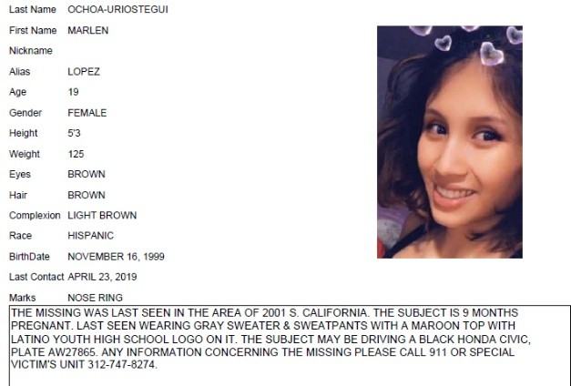 Una mujer con nueve meses de embarazo fue a una casa de Chicago, Estados Unidos, porque en Facebook le ofrecieron ropa de bebé gratis, pero en vez de eso fue estrangulada y luego le sacaron el bebé cortándole el vientre, dijeron la policía y familiares.El bebé estaba en condición grave y los médicos dudan que sobreviva. Tres personas fueron detenidas por homicidio y otros cargos a ser presentados el jueves por la tarde, dijo el portavoz de la policía Anthony Guglielmi.El cadáver de Marlen Ochoa Lopez, de 19 años, fue hallado el miércoles detrás de la casa, más de tres semanas después de su desaparición. Se le vio por última saliendo de la secundaria a la que iba el 23 de abril, el mismo día que se llamó a los paramédicos a la casa ubicada a varios kilómetros de allí, en el Southwest Side, por un recién nacido con problemas para respirar."Creemos que la asesinaron, y creemos que el bebé fue removido a la fuerza después de que la mataron", dijo Guglielmi, quien calificó el crimen como "un horrible acto de violencia".Una mujer llamó al número de emergencia 911 y reportó que su bebé recién nacido estaba en peligro, informó Larry Merritt, vocero del Departamento de Bomberos de Chicago. Cuando llegaron los paramédicos "el bebé no respiraba, estaba azul!", agregó Merritt. Los paramédicos intentaron resucitarlo de camino al hospital.La familia de Ochoa, quien estaba casada y tenía un hijo de 3 años, dijo que una mujer la invitó por Facebook a su casa y le ofreció una carriola y ropa de bebé."Ella estaba regalando ropa, supuestamente con el pretexto de que a sus hijas le habían regalado ropa y ellas tenían toda esta ropa para niño", dijo Cecelia García, portavoz de la familia.Su familia la había estado buscando desde que desapareció hace más de tres semanas, organizando operativos, dando conferencias de prensa y presionando a la policía para que informara sobre las novedades del caso.Un avance en la investigación llegó cuando la mujer que dijo que había dado a luz al bebé organizó una campaña de financiamiento en línea, dijo otra vocera de la familia Ochoa López. La campaña era que el bebé estaba a punto de morir y necesitaban dinero para el funeral, dijo Sara Walker.La policía realizó pruebas de ADN para determinar que Ochoa y su esposo, Yiovanni López, en realidad eran los padres de ese bebé, dijo Walker.López ha estado visitando a su hijo en el hospital.La policía identificó a la esposa de López como Marlen Ochoa Uriostegui, pero dijo después que ella utilizaba el apellido de su esposo.IM