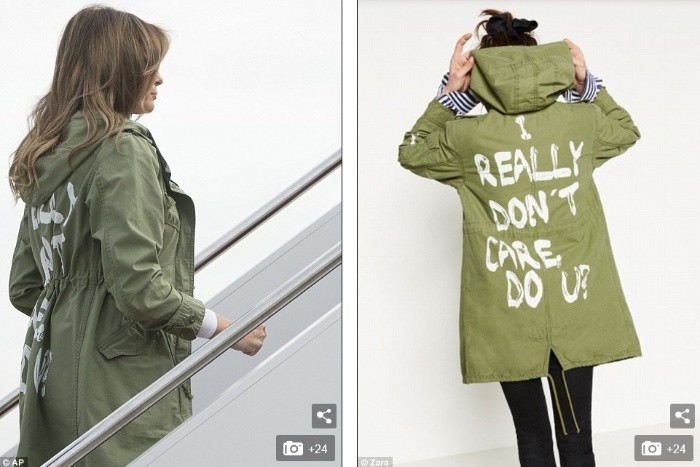 La primera dama de Estados Unidos, Melania Trump, causó polémica al vestir una gabardina color verde militar con un controversial mensaje en la parte posterior tras su llegada a un albergue de niños inmigrantes en Texas.“En realidad no me importa, ¿a ti sí?”, se lee en la espalda del saco.Al ver las imágenes, usuarios se cuestionaron sobre hacia quién iba dirigido el mensaje y señalaron que el uso de la gabardina fue inapropiado puesto que en los últimos días se ha vivido una ola de reclamos internacionales hacia Donald Trump y su política de "Cero Tolerancia".Melania usó la prenda solamente a su llegada a la localidad de McAllen en Texas, en donde realizó una sorpresiva visita a un albergue de niños administrado por la Iglesia luterana y un centro de procesamiento de inmigrantes de la guardia fronteriza.El diario británico Daily Mail señaló que la gabardina era de la marca Zara y tiene un costo de 39 dólares.El día de ayer, Trump firmó una orden ejecutiva para detener la separación de los niños inmigrantes de sus padres cuando estos son detenidos en la frontera sur, algo que ha generado críticas en todo el mundo.JB