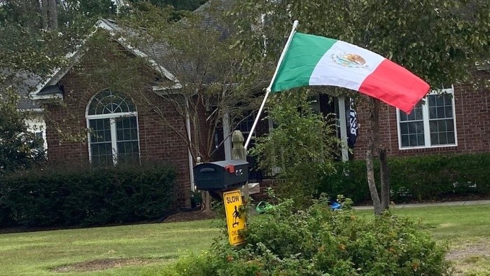 La carta estaba dirigida al "jefe del hogar" y en cuatro líneas (cargadas de insultos) expresaba su propósito."Cuando hijos de p*** como ustedes izan su m***** de bandera mexicana, eso significa guerra. La segunda enmienda da el derecho y el deber de usar armas para eliminar de mi país a personas como tú y tu familia"."BAJEN LA BANDERA O SENTIRÁN MI IRA".Jessica Zambrano dijo que tuvo que releerla para "no malinterpretar el propósito" de lo que decía.Pero la carta era muy clara: alguien no estaba de acuerdo con que hubiera una bandera mexicana izada al lado de una estadounidense en la entrada de su casa en Wilmington, Carolina del Norte.En esa ciudad del sureste de Estados Unidos, donde más del 75% de la población es blanca, menos del 10% de sus habitantes son latinos, El estado ha sido un bastión conservador desde la década de 1960.Los Zambrano son mexicano-estadounidenses y, orgullosos de ello, decidieron mostrarlo en su porche.Tras conocerse la amenaza, sus vecinos dieron una muestra de solidaridad que llamó la atención en redes sociales y en medios locales y nacionales de EE.UU.La calle se llenó de banderas mexicanas."Vecinos solidarios, haciéndole saber a esta persona [el remitente de la carta] que sus creencias no son bienvenidas aquí. Nos lo expresaron en un momento de necesidad y estamos eternamente agradecidos", escribió Jessica Zambrano en Facebook.La estadounidense Jessica Zambrano está casada con Gustavo Zambrano, un hombre originario de Michoacán, México, que tiene la doble nacionalidad."Aunque también es ciudadano estadounidense, eso no borra de dónde viene", explica la mujer en un mensaje con miles de reacciones en Facebook."Tenemos una bandera mexicana en nuestro porche. Bueno, a la persona que envió esta carta claramente no le gustó eso. Y sintió que era su 'deber' informárnoslo", añade.La Oficina del Alguacil del condado de New Hanover le dijo a BBC Mundo que, tras recibir la denuncia de la amenaza, se inició una investigación junto al Buró Federal de Investigaciones (FBI, por sus siglas en inglés) y el Servicio Postal de EE.UU.Jessica Zambrano le contó a BBC Mundo que la semana pasada habló con un detective: "Todavía están investigando".La Segunda Enmienda de la Constitución de EE.UU., a la que hace referencia la carta, garantiza el derecho de los estadounidenses a poseer y portar armas, pero su significado ha sido motivo de debate durante décadas."Siendo necesaria una milicia bien ordenada para la seguridad de un Estado libre, no se violará el derecho del pueblo a poseer y portar armas", dice el texto constitucional.El sentido de "milicia bien ordenada" que procure la "seguridad de un Estado libre" ha sido debatido históricamente entre quienes consideran que es un deber personal cuidar la soberanía de EE.UU., y otros que opinan que eso era reflejo de una época que ha quedado superada.Para Zambrano, las "acciones y comentarios" de líderes de EE.UU. en los últimos tiempos han sido "gasolina" para "grupos extremistas que se sienten validados en sus creencias"."El racismo y la xenofobia corren por las venas de este país. Están incrustados profundamente en nuestros vecindarios, escuelas, lugares de trabajo, en todas partes. Debemos exponerlo y enfrentarlo", agregó Zambrano, que considera que el remitente de la carta "no representa a la mayoría de los verdaderos estadounidenses".Unos días después de su publicación, a comienzos de octubre, la calle donde vive la familia Zambrano se llenó de banderas mexicanas."El gran apoyo que recibimos de nuestros amigos y familiares nos dio paz. Nos dio la esperanza de que algún día haya un lugar donde no exista un comportamiento como este. Donde nuestros niños no se sentirán amenazados por el color de su piel, de dónde vienen, el idioma que eligen hablar en público o simplemente por quiénes son", expresó Zambrano. Ahora puedes recibir notificaciones de BBC News Mundo. Descarga la nueva versión de nuestra app y actívalas para no perderte nuestro mejor contenido.¿Ya conoces nuestro canal de YouTube? ¡Suscríbete!