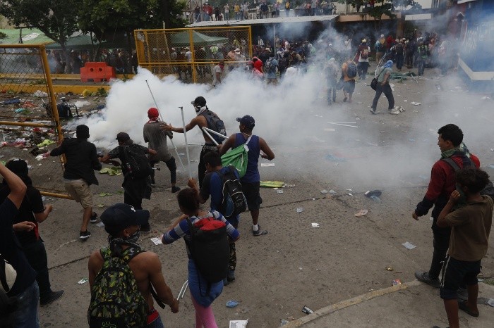 Miles de migrantes, en su mayoría hondureños, rompieron hoy la valla metálica que separa a Guatemala de México y después de un enfrentamiento con la policía cruzaron corriendo y gritando a territorio mexicano.Los antimotines guatemaltecos lanzaron bombas lacrimógenas a los migrantes que, en su desesperación por seguir su trayectoria hacia Estados Unidos, respondían con piedras y palos."Vamos para México", gritaban los migrantes de esta nueva caravana desesperados mientras se dirigían a la aduana mexicana, donde hay una fuerte presencia policial mexicana que les impide el paso para cruzar el puente o el río que separa a ambos países.Durante el enfrentamiento, se vivieron momentos de mucha tensión, los niños lloraban mientras las madres los agarraban de la mano y los arrastraban para continuar el paso y salir de la línea de fuego, donde varios resultaron heridos, aunque por el momento se desconoce el número."No entiendo porque hacen esto señor. ¿Acaso los niños no tienen derecho?", gritaba un señor entre lágrimas lamentándose de que algún pequeño pudo haber muerto.Una primera caravana de migrantes, ahora formada por unas siete mil personas, partió el 13 de octubre de San Pedro Sula (Honduras) con dirección a Estados Unidos y gran parte de ella marcha actualmente por México, tras pasar por Guatemala.Mientras, esta segunda caravana, de unas mil 500 personas, está atravesando Guatemala dispersa en varios grupos que también tiene a Estados Unidos como destino final, y se prevé la llegada en los próximos días de otra de migrantes salvadoreños que este domingo salieron de su país.El presidente de EU, Donald Trump, ha adoptado una postura muy dura, amenazando con enviar el Ejército a la frontera, y ha asegurado que recortará "sustancialmente" la ayuda económica que concede a Guatemala, Honduras y El Salvador como represalia por el avance de los migrantes, al tiempo que ha arremetido contra México por no detenerla.LS