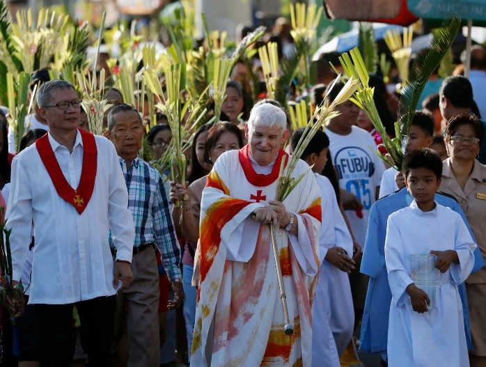 Millones de fieles acudieron hoy a las iglesias de todo el archipiélago filipino con motivo del Domingo de Ramos, en el que se conmemora de acuerdo con la tradición cristiana la entrada de Jesús en el templo de Jerusalén.El arzobispo de Manila, Luis Antonio Tagle, bendijo a los creyentes que se habían congregado con palmas desde primera hora de la mañana en la catedral de la capital filipina de la Inmaculada Concepción, en el casco histórico de la ciudad.Miles de religiosos procedieron a la misma ceremonia en los templos católicos de todo el país.El Domingo de Ramos marca en la tradición cristiana el inicio de la Semana Santa, que como la Navidad y otras festividades religiosas es seguida con fervor por el pueblo filipino.Filipinas es el único país de Asia de mayoría católica, herencia de cerca de tres siglos y medio de colonización española.