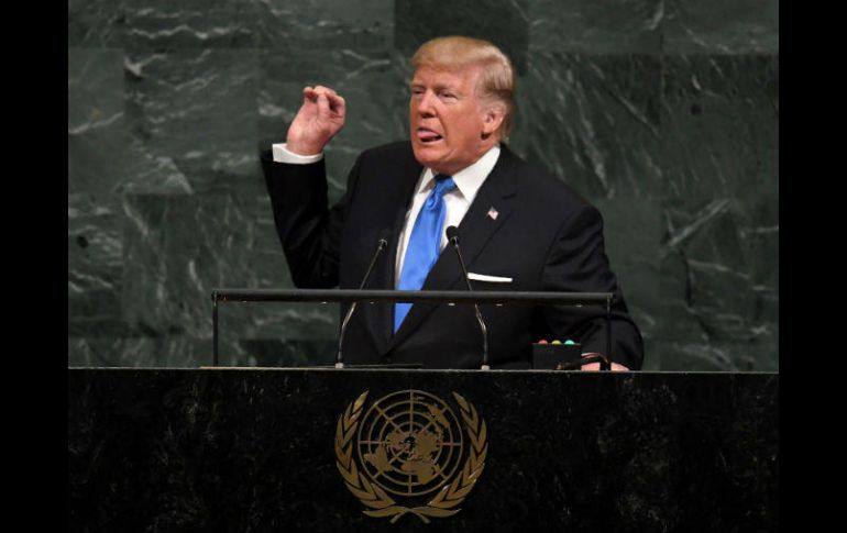 NUEVA YORK, ESTADOS UNIDOS (19/SEP/2017).- El presidente de Estados Unidos, Donald Trump, defendió ante la ONU su idea de destruir a Corea del Norte si no cesa sus ejercicios nucleares."Estados Unidos tiene mucha fuerza y paciencia, pero si se ve forzado a defenderse y a sus aliados, no tendremos otra opción más que destruir totalmente a Corea del Norte", dijo ante el asombro de los representantes de 130 países en Nueva York. Trump no paró ahí, sino que hizo gala de sus habilidades diplomáticas y se refirió a Kim Jong-Un como "Rocket man" (hombre cohete)."Rocket man está en una misión suicida para él mismo y para su régimen. Estados Unidos está listo y dispuesto, pero esperemos que esto no sea necesario", advirtió."Para eso están las Naciones Unidades, veamos cómo lo hacen; es tiempo de que Corea del Norte se dé cuenta de que la desnuclearización es su único futuro aceptable", indicó, e insistió en que las pruebas nucleares y de misiles balísticos de Corea del Norte "amenazan al mundo entero", al pedir unidad para aislar al régimen de Pyongyang.Según Trump, a ninguna nación del planeta le interesa que el régimen de Pyongyang, al que acusó de "matar de hambre" a millones de norcoreanos, pueda tener a su alcance armas nucleares.Trump también agradeció a China y Rusia por haber votado a favor de sanciones contra Corea del Norte en el Consejo de Seguridad de la ONU, aunque anotó que hay que hacer "mucho más" frente a las amenazas de Pyongyang.A raíz de los últimos ensayos nucleares y lanzamientos de misiles de Pyongyang, Trump ha dicho que no descarta recurrir a la "opción militar".Durante su debut en la Asamblea General de las Naciones Unidas, el mandatario advirtió que los llamados Estados "paria" representan una amenaza a la estabilidad de todo el mundo."Regímenes paria representados en este cuerpo, no solo apoyan el terror sino que además amenazan a otras naciones y a su propia gente con las más destructivas armas conocidas por la humanidad", dijo Trump, en referencia a Corea del Norte.Así, Trump defendió su principio de "Estados Unidos primero", y dijo que todos los líderes del mundo deberían seguirlo y pensar también en sus propios intereses, aunque sin abandonar la cooperación en ciertos temas."Como presidente, siempre pondré a Estados Unidos primero, igual que ustedes, como líderes de sus países, deberían siempre poner a sus propios países primero", dijo en su primer discursoPor otra parte, destacó los logros de sus primeros meses de mandato y subrayó: "Vivimos en un tiempo de extraordinaria oportunidad".A Estados Unidos "le ha ido muy bien desde el día de las elecciones", comentó Trump al comienzo de su intervención al mencionar, entre otras cosas, los récords en la bolsa y el desempleo en su menor nivel en 16 años.Con información de EFE y AFP.