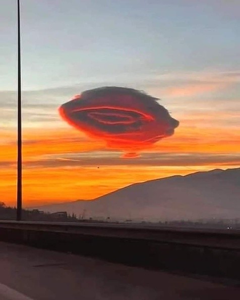 En el cielo de Turquía se registró este viernes un extraño fenómeno. En la ciudad de Bursa se pudo ver en las alturas una figura con forma de un objeto volador no identificado (OVNI).En redes sociales, usuarios compartieron las imágenes del cielo que sorprendió por la formación de una nube en color ojo que se volvió más profundo conforme pasaron las horas.Aunque en realidad no es nada extra normal, se trata de una nube lenticular, que son comunes durante el invierno, pero pueden aparecer durante todo el año. La forma de esa nube permaneció durante una hora intacta, según los testigos, lo que permitió que se tomaran muchos videos e imágenes.Estas nubes lenticulares se forman cuando la capa de la atmósfera se encuentra justo en la cúspide de la saturación de las montañas, por lo que solo es en las cimas y crestas de las montañas donde suelen aparecer.