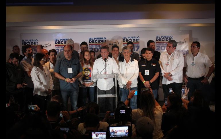 La oposición venezolana, agrupada en la Mesa de la Unidad Democrática (MUD), dijo hoy que no reconoce los resultados de las elecciones regionales celebradas este domingo en su país que anunció el Consejo Nacional Electoral (CNE).Según el CNE, el chavismo obtuvo 17 de las 23 gobernaciones de Venezuela."No reconocemos los resultados anunciados hoy por el CNE", dijo el jefe de la campaña de la MUD, Gerardo Blyde, en rueda de prensa en la que señaló que la alianza opositora pedirá una auditoría de todo el proceso electoral.Explicó que no reconocían los resultados "no solamente por todas las violaciones de ley que se vinieron cometiendo durante el proceso", como la sustitución de candidatos y la reubicación de centros electorales, sino también por la violación del "derecho de elegir y ser elegido".El político opositor acusó al CNE de tener un "sistema tramposo, que no es transparente, que representa unas condiciones abusivas de quien detenta el poder", y dijo que los resultados ofrecidos hoy por las autoridades electorales "no reflejan la realidad"."Ni Venezuela ni el pueblo venezolano ni el mundo se comen el cuento que hoy nos echaron, el propio Gobierno no puede explicar estos resultados", afirmó.Por ello, Blyde indicó que exigen que se audite todo el proceso desde el sistema hasta las huellas para que pueda haber un reconocimiento o no de los resultados anunciados."En este momento no reconocemos ninguno de los resultados", remarcó, al tiempo que señaló que han pedido a sus operadores regionales de todos sus candidatos, "incluyendo aquellos que han sido declarados vencedores" -en cinco estados del país-, que verifiquen todo el proceso.Asimismo, han solicitado a sus candidatos salir mañana lunes a diversas actividades de calle para respaldar el desconocimiento de los resultados oficiales."Estamos en un momento muy grave para la República, para el país, estamos ante un sistema que no da confianza y que solo unos pocos creen que este sistema electoral es transparente y que puede brindar seguridades a quien vota en este país", agregó.Por último, instó a todos los políticos que están dentro y fuera de la MUD a unirse en una misma política y un criterio, "con una estrategia común", para así poder hacerle frente al Gobierno de Nicolás Maduro.