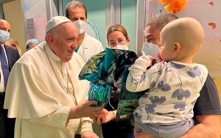 Este viernes, y aún recuperándose de la bronquitis que le aqueja, el Papa Francisco visitó la planta de oncología pediátrica del hospital en el que permanece ingresado, el Gemelli de Roma, donde repartió regalos a varios niños y bautizó a uno de ellos, informó el Vaticano después de confirmar que se prevé que reciba el alta mañana.Francisco salió del apartamento reservado a los Pontífices y se dirigió a la zona de pediatría para entregar rosarios, huevos de Pascua y ejemplares del libro "Nacque Gesù a Betlemme di Giudea…" ("Jesús nació en Belén de Judea").Durante la visita, que duró cerca de media hora, el Papa impartió el sacramento del bautismo a un niño de pocas semanas de vida, llamado Miguel Ángel, cuyo video fue difundido por la Santa Sede.Según el portavoz del Vaticano, Matteo Bruni, Francisco saldrá del hospital previsiblemente mañana, después de superar hoy una serie de controles por la bronquitis por la que tuvo que ser ingresado el miércoles.Francisco, de 86 años, ha pasado su segunda noche en el hospital Gemelli de Roma a causa de una bronquitis y su intención es estar presente en los actos de la Semana Santa, aunque no los oficie.De hecho, asistirá a la misa del Domingo de Ramos en la plaza de San Pedro.Dado su estado de salud, con el Pontífice convaleciente, el Vaticano trabaja en un programa que permita celebrar la Pascua y, según avanzan los medios, la idea es que los ritos sean oficiados en el altar por distintos cardenales pero presididos por Francisco.El Domingo de Ramos estará oficiado por el vicedecano del Colegio Cardenalicio, el purpurado Leonardo Sandri, y con esta celebración se abrirá la semana más importante del calendario litúrgico, en la que los católicos conmemoran la muerte y resurrección de Cristo.Por el momento no se ha confirmado en qué modo Francisco se involucrará en las distintas misas, si por ejemplo leerá homilías o mensajes como el que suele pronunciar al término del Vía Crucis de Viernes Santo, en el Coliseo Romano.Por el momento se espera que se encargue de pronunciar la homilía del Domingo de Ramos y también de impartir la tradicional bendición "Urbi et Orbi" y leer su mensaje del Domingo de Resurrección desde la logia central de la basílica de San Pedro.Francisco padece una bronquitis de base infecciosa y está recibiendo antibióticos en infusión, por vía intravenosa, una terapia que ha producido "los efectos esperados con una notable mejoría de su estado de salud", indicó el portavoz vaticano.JM