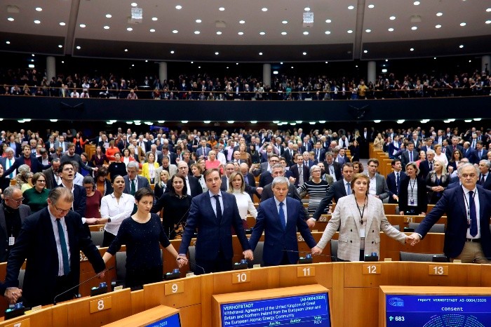 Los eurodiputados ratificaron este miércoles el acuerdo de retirada del Reino Unido de la Unión Europea (UE), sellando el primer divorcio en la historia del bloque, en una sesión marcada por las lágrimas y las despedidas a dos días del Brexit."Sólo en la agonía de la separación miramos en la profundidad del amor", dijo la presidenta de la Comisión Europea, Ursula von der Leyen, que citó a la poeta británica George Eliot. "Siempre te amaremos y nunca estaremos lejos", agregó.Por 621 votos a favor, 49 en contra y 13 abstenciones, el Parlamento Europeo allanó el camino hacia una salida ordenada del Reino Unido que seguirá respetando las reglas europeas durante un período de transición hasta finales de año.Cuando el voto favorable se daba por hecho, el protagonismo recayó en los diputados británicos que, a las 23H00 GMT del viernes, dejarán de serlo, especialmente en Nigel Farage para quien es "un punto de no retorno". "Nunca volveremos".Para su última intervención en la Eurocámara, Farage, adalid del Brexit, crispó de nuevo el ambiente con un duro discurso y poniendo sobre su banca una bandera británica, contra las normas de la Eurocámara.Las palabras de las fuerzas europeístas fueron sin embargo de cariño hacia los ciudadanos del Reino Unido. "Si los británicos deciden volver, nuestros brazos estarán abiertos", aseguró la jefa de filas de los socialistas, Iratxe García.El 'leitmotiv' de la jornada fue: "No es un adiós, es un hasta luego". "Mantengamos el sueño vivo, sobre todo para los jóvenes", aseguró la eurodiputada británica ecologista, Molly Scott-Cato, antes de romper a llorar.Tras la votación, los eurodiputados europeístas se cogieron de la mano y empezaron a cantar a capela "Auld Lang Syne", una popular canción escocesa entonada en momento solemnes como despedidas, dando más emotividad a la sesión.A diferencia de los partidarios del Brexit, las instituciones europeas mantienen perfil bajo. La firma oficial del acuerdo el viernes por los presidentes de la Comisión y el Consejo europeos se hizo de madrugada y sin periodistas.La Eurocámara parece seguir la misma línea. La retirada de la bandera británica no contará con una ceremonia oficial, aunque un ejemplar de la 'Union Jack' se conservará en la Casa de la Historia Europea, explicó una vocera.El primer ministro británico, Boris Johnson, dijo este miércoles ante el Parlamento Británico que llevará a cabo una "salida digna" de la UE y reconoció la necesidad de "unirse en un espíritu de confianza" en ese "gran momento" para su país.El Reino Unido se encamina a poner fin a 47 años de tumultuosa relación el próximo viernes. Londres ya presentó el documento de ratificación y el presidente de la Eurocámara, David Sassoli, ya firmó el correspondiente. El Consejo de la UE deberá dar el último visto bueno el jueves.El Brexit, en virtud de un referéndum de 2016, da la puntilla a una UE que superó, aunque no indemne, una crisis económica y otra migratoria en los últimos años y que fía su porvenir a políticas de crecimiento "verde" y mayor control de sus fronteras."Aunque dejemos las instituciones de la UE, no dejamos Europa", dijo el martes en Bruselas el secretario de Estado británico Christopher Pincher, abogando por una "cooperación amistosa" basada "en un acuerdo de libre comercio".Con el divorcio encaminado, la atención se centra en el acuerdo sobre la futura relación, especialmente comercial, que ambas partes deberán cerrar para finales de 2020, cuando termina el período de transición previsto.Pero, con su retirada de la UE, el Reino Unido recupera también su libertad para negociar acuerdos comerciales con terceros países, como el Estados Unidos de Donald Trump que ya ha puesto los ojos en su aliado transatlántico.Washington, cuyo jefe de la diplomacia Mike Pompeo viajó este miércoles al Reino Unido, convirtió en una prioridad cerrar un acuerdo comercial con el gobierno británico de Boris Johnson en 2020, generando recelos en la UE.La relación a ambos lados del Canal de la Mancha no será la misma, advirtió el negociador europeo Michel Barnier. "Deseo lo mejor para ellos, pero es difícil superar todos estos desafíos solo", alertó.IM