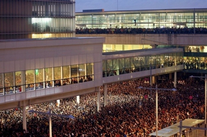 No tienen líderes visibles, pero fueron capaces de movilizar a miles de personas y bloquear los accesos al aeropuerto de Barcelona.Tsunami Democràtic es la misteriosa plataforma que está organizando las masivas protestas en Cataluña contra la condena a nueve líderes catalanes independentistas.El pasado lunes, el Tribunal Supremo les impuso una sentencia de entre 9 y 13 años de prisión por su papel en el proceso que llevó a la celebración de un referéndum y la declaración de independencia de Cataluña en 2017.Tsunami Democràtic apareció por primera vez en las redes sociales en septiembre como una campaña de movilización antes del veredicto del Supremo, sobre la base de la "desobediencia civil" y una "lucha no violenta"."Recuperamos la iniciativa. Con la no violencia y la desobediencia civil como herramientas, adelantémonos a la sentencia. Cambiemos el estado de cosas: Súmate al #TsunamiDemocràtic. Tú eres el tsunami", publicaron en Twitter el pasado 2 de septiembre.Sin embargo, no fue hasta este lunes, el día en que se dio a conocer la sentencia, que cobró más notoriedad.Alrededor de 10.000 personas, según el Ministerio del Interior español, bloquearon los accesos al aeropuerto de El Prat durante varias horas, siguiendo los llamados a la movilización de Tsunami Democràtic a través de las redes sociales.La protesta ocupó titulares en medios de todo el mundo: 110 vuelos fueron cancelados y más de 100 personas resultaron heridas durante los enfrentamientos con la policía."Esto es solo el comienzo, tenemos que prepararnos para lo que viene y hacer que el #TsunamiDemocràtic sea imparable", tuiteó el movimiento el lunes por la noche.Pero en torno a Tsunami Democràtic hay un gran misterio y mucho interés por saber quién está detrás.El movimiento no tiene líderes identificados y promueve las protestas a través de internet. Sus miembros no dan entrevistas presenciales o telefónicas alegando motivos de seguridad, pero sí responden por correo electrónico.Según la organización, el objetivo de las protestas no es solo mostrar el rechazo a la sentencia del Tribunal Supremo a los líderes independentistas."El objetivo de las protestas es uno: que el Estado español se siente a negociar políticamente una solución para la autodeterminación de Catalunya", le dice Tsunami Democràtic a BBC Mundo a través de un correo electrónico.Desde la organización afirman que no tienen líderes visibles porque "es un movimiento colectivo, transversal y mutable". "Tsunami es todo el mundo que quiere estar en Tsunami".Dicen que el movimiento lo componen "centenares" de personas "comprometidas con el derecho a la autodeterminación pero también con la defensa de los derechos fundamentales" y "repartidas por muchas partes del mundo".Hasta ahora, su único rostro público ha sido el entrenador catalán de fútbol Pep Guardiola, quien puso su voz a un mensaje de video grabado en inglés en el que dijo que España "vive una deriva autoritaria" y demandó a la comunidad internacional que intervenga en este conflicto y "encontrar soluciones políticas y democráticas".La aparición en redes sociales de Tsunami Democràtic se produjo apenas unos pocos días después de que varios líderes independentistas se reunieran en Suiza, incluido el presidente del gobierno catalán, Quim Torra, y su antecesor en el cargo, Carles Puigdemont, quien se encuentra fugado de la Justicia española en Bélgica.Esto generó especulaciones de que el movimiento fue creado por partidos independentistas catalanes. El diario español El País publicó este miércoles que el movimiento nació en esa cumbre, citando a fuentes policiales sin identificar.Cuando anunciaron su aparición en Twitter el pasado septiembre, varios líderes independentistas, como Puigdemont, Torra y Oriol Junqueras, exvicepresidente del gobierno catalán condenado a 13 años de prisión y 13 de inhabilitación absoluta por delito de sedición, mostraron su apoyo al movimiento."Hace falta recuperar la iniciativa, y en todos los ámbitos. Esta es una buena forma, inteligente. El compromiso con la no violencia nos hace más fuertes, que nadie lo dude. Y sí, ahora comienza el momento de reanudar", tuiteó Puigdemont.Pero Tsunami Democràtic niega categóricamente cualquier vínculo con los partidos políticos: "Dejamos claro que Tsunami no surge ni está dirigido por ninguno de ellos".El gobierno español está investigando quién está detrás del nuevo movimiento."Tenemos unos servicios de Inteligencia eficaces y terminaremos sabiendo quién está detrás de estos movimientos del Tsunami Democràtic", dijo el martes el ministro del Interior, Fernando Grande-Marlaska, en la radio pública RNE.El movimiento expresó su "estupefacción" ante las declaraciones del ministro."Nos preguntamos si los servicios secretos españoles se dedican también a investigar quién organiza las manifestaciones feministas o contra la crisis climática", dijo, a través de correo electrónico.El movimiento emite comunicados e instrucciones a sus seguidores a través de redes sociales.Generalmente utiliza el servicio de mensajería cifrada Telegram, donde tienen más de 280.000 seguidores, para hacer las convocatorias.Además, este lunes lanzó su propia aplicación móvil para distribuir mensajes. Para usarla se necesita un QR, o código de respuesta rápida, que se pasan de unos seguidores a otros. Cada código puede usarse hasta 10 veces.A la movilización del lunes que bloqueó los accesos al aeropuerto le siguieron fuertes protestas el martes y miércoles en Barcelona y otras ciudades catalanas, que se volvieron violentas.El centro de la capital catalana, donde se concentraron unas 40.000 personas según cifras de la policía local, se convirtió en el escenario de una batalla campal.Los manifestantes lanzaron latas, piedras y bengalas a la policía antidisturbios, e incendiaron contenedores de basura y formaron barricadas en una tensa confrontación 