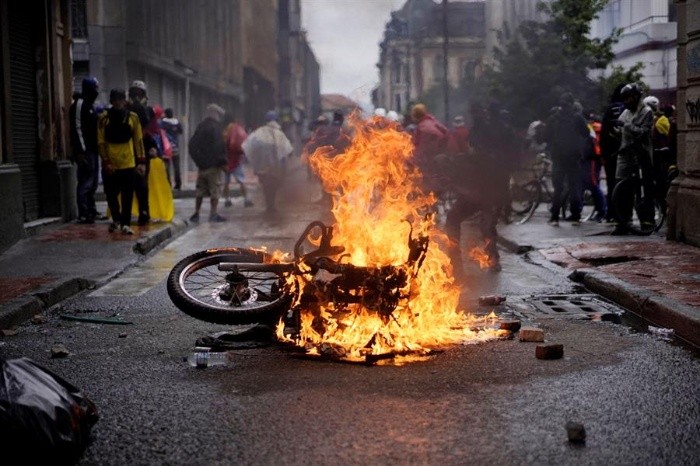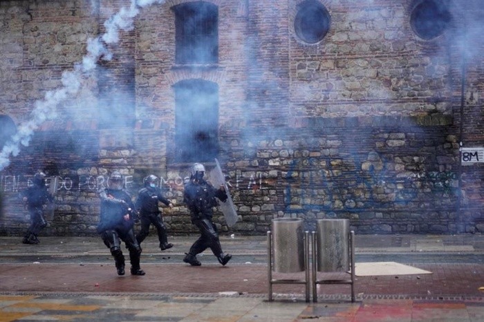 La Defensoría del Pueblo ha recibido el reporte de 42 muertos durante las protestas contra el Gobierno colombiano que completan 14 días en el país, según informó este martes en un documento en el que también recogió que 168 personas dadas como desaparecidas continúan sin ser localizadas.De las 42 víctimas mortales de las que tiene conocimiento la institución, 41 corresponden a civiles y una más a un agente de la fuerza pública.Hasta el viernes de la semana pasada, la Fiscalía y la Defensoría habían confirmado la muerte de 27 personas durante las jornadas reivindicativas, de las cuales 11 están ligadas directamente con las protestas, siete están "en verificación" y hay nueve que no tienen relación con las movilizaciones.Por una de las peores crisis sociales y políticas que ha vivido el país, varias organizaciones colombianas lanzaron hoy un llamado de auxilio a la comunidad internacional y denunciaron los excesos de la fuerza pública cometidos desde el pasado 28 de abril, cuando comenzaron las movilizaciones.Según los registros de la ONG Temblores, durante las protestas han ocurrido 40 casos de víctimas de "violencia homicida" por parte de la fuerza pública y al menos mil 956 casos de violencia física, que incluyen 28 agresiones oculares, así como 12 casos de violencia sexual.Ante esas denuncias, el alto comisionado para la paz del país, Miguel Ceballos, dijo hoy que "habrá cero tolerancia a cualquier violación de la Constitución y de la ley" por parte de "funcionarios públicos y también de la fuerza pública".Además anunció que el Gobierno está dispuesto a comenzar un ciclo de conversaciones permanentes con el Comité Nacional de Paro, convocante principal de las huelgas, luego de que el primer encuentro de este lunes terminara sin acuerdos, según los voceros de las protestas, porque "no hubo empatía del Gobierno", que evitó "totalmente la palabra negociación".Varios agentes de la Policía han sido acusados por la muerte de algunas de las víctimas, lo que el Gobierno se ha comprometido a investigar de manera independiente para que no haya impunidad.En ese sentido, la Inspección de la Policía Nacional comenzaron 62 investigaciones disciplinarias en la institución por las que fueron detenidos tres uniformados vinculados a la muerte de dos jóvenes baleados durante protestas pacíficas, mientras que la Fiscalía imputará a varios oficiales por los homicidios de otros tres civiles.Durante las protestas además fue asesinado a cuchilladas por delincuentes el capitán de la Policía Jesús Alberto Solano en Soacha, localidad aledaña a Bogotá.También ha habido víctimas de civiles supuestamente opuestos al vandalismo que intimidan a los manifestantes y los atacan a tiros desde vehículos de alta gama, como ocurrió con Lucas Villa, un estudiante de 37 años que falleció hoy luego de recibir ocho disparos el pasado miércoles en la ciudad de Pereira (oeste).Mientras en las calles siguen, con menor intensidad, los disturbios, sobre todo en la ciudad de Cali, los sindicatos y organizaciones que están detrás de la organización del paro nacional del 28 de abril volvieron a convocar una jornada de huelga para este miércoles.JM