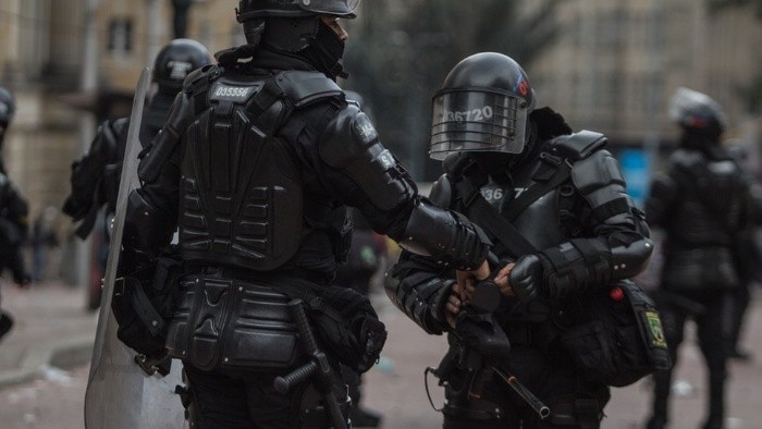 El mensaje fue pintado en una vigilia en la ciudad de Cali, convertida en el epicentro de la ola de protestas que vive Colombia.Familiares y amigos recordaban así a Nicolás Guerrero, uno de los 19 fallecidos confirmados durante las protestas.Un video que se hizo viral muestra cómo el cuerpo del hombre de 27 años queda tendido en el suelo después de que se escucharan disparos.Si bien no existe certidumbre respecto a quién disparó contra Guerrero, su fallecimiento, al igual que otros sucedidos desde el inicio de las manifestaciones (28 de abril), lo atribuyen los vecinos al controversial Escuadrón Móvil Antidisturbios de Colombia, conocido en el país como ESMAD.El ESMAD es una unidad antidisturbios que fue creada en 1999 durante el gobierno de Andrés Pastrana en uno de los periodos más agudos de la guerra en Colombia. Depende de la policía y está adscrito al Ministerio de Defensa.Aunque fue fundado bajo un decreto transitorio, el expresidente Álvaro Uribe (2002-2010), el padrino político de Duque, lo formalizó y creó el curso que capacita a los agentes de esta unidad.Entre 1999 y 2018, las acciones del bloque policial produjeron la muerte de 18 personas solo en Bogotá, según la ONG Paz y Reconciliación. Pero los reportes oficiales muestran que la mayoría de las intervenciones del organismo han sido en el departamento del Cauca, zona de presencia guerrillera e indígena.Durante los últimos años, el organismo realizó operaciones de desalojo de propiedades: 1.154 entre 2013 y 2015, según cifras oficiales.Cientos de agentes del ESMAD han sido procesados por infracciones disciplinarias durante años. Hasta 2015, la Fiscalía había procesado casi 40.000 casos, de los cuales 18 resultaron en condenas, según reportes oficiales.Los agentes antidisturbios están equipados con lanzadores de proyectiles múltiples que pueden disparar balas de salva, gases lacrimógenos, aturdidores y bolas de paintball.Durante las últimas protestas, el papel del ESMAD llamó la atención de diferentes organismos de derechos humanos.Uno de ellos es Human Rights Watch, cuyo director regional José Miguel Vivanco señaló que las muertes y acciones violentas de los agentes hacen "impostergable" una reforma policial en Colombia."Las protestas en los últimos años en Colombia generan enormes dudas sobre si la Policía —y en especial el ESMAD— son capaces de respetar plenamente los DD.HH. en estas circunstancias", señaló Vivanco este lunes.Además, la entidad sin fines de lucro Oficina de Washington para América Latina (WOLA, por su sigla en inglés) le pidió al gobierno de Joe Biden que suspenda ventas y dotación de equipos antidisturbios al ESMAD por lo sucedido en los días recientes.En 2019, el excongresista y abogado de derechos humanos Alirio Uribe señaló a BBC Mundo que "el compromiso (del ESMAD) en múltiples homicidios ha hecho que pierda su credibilidad"."Eso hace que apenas salen a la calle, en el marco de una manifestación, automáticamente generen violencia porque no cumplen una labor disuasiva", agregó."Además, en paros prolongados los agentes no descansan, salen malhumorados y tienen una formación doctrinaria antisubversiva, ven en cada manifestante un terrorista, un tema que viene del discurso militar", concluye el experto.En los últimos años, el ESMAD fue responsabilizado de la muerte del joven Dilan Cruz, durante el paro nacional de noviembre de 2019.A finales de 2018 también se cuestionó su papel por sus acciones para contener las protestas universitarias que se produjeron.En un mensaje a la nación emitido en la tarde de este martes, el presidente Iván Duque reivindicó el papel que juegan policías y militares en los conflictos sociales que se viven."Los hombres y mujeres que portan los uniformes de las Fuerzas Armadas y de Policía encarnan nuestros valores democráticos", indicó el mandatario.Duque añadió que las fuerzas de seguridad colombianas llevan los derechos humanos "en su corazón"."Nada justifica que haya personas armadas que, amparadas en el deseo legítimo de la ciudadanía de hacer marchas cívicas, salgan a disparar a ciudadanos indefensos y a agredir cruelmente a nuestros policías", indicó.Horas antes, el ministro de Defensa Diego Molano afirmó que agentes del ESMAD y otras unidades sufrieron diferentes ataques con armas de fuego y armas blancas."464 uniformados tienen contusiones, 93 han sido heridos con arma cortopunzante, tres con arma de fuego y 15 por artefactos explosivos o acción incendiaria. De ellos 25 continúan hospitalizados", señaló la autoridad gubernamental en conferencia de prensa.Molano exaltó el papel del ESMAD y detalló que desde el inicio de los conflictos el escuadrón realizó 563 acciones, 431 capturas y 34 aprehensiones de menores de edad.En Cali fueron desplegados más de 2.500 agentes de la fuerza pública, entre ellos uniformados del ESMAD. Llegaron de diferentes puntos del país 1.800 policías y 700 miembros del Ejército junto a dos helicópteros y 60 motos adicionales.Al menos un capitán de la Policía colombiana falleció durante los conflictos, según la Defensoría del Pueblo.*Esta nota es una actualización de una versión publicada en 2019. Fue elaborada con reportería del corresponsal de BBC Mundo en Colombia Daniel Pardo.