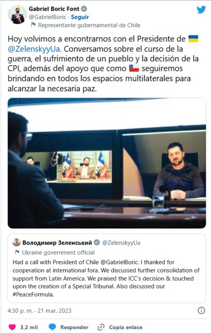 La invasión rusa a Ucrania ha partido en dos el mapa geopolítico del mundo.Como si fuera un juego de ajedrez, las dos fuerzas involucradas en el conflicto bélico mueven sus fichas cautelosamente con el fin de reunir la mayor cantidad de apoyos posible.En esta compleja ecuación, América Latina no ha sido la excepción y ha despertado el interés tanto de Moscú como de Kyiv.El presidente ucraniano, Volodymyr Zelensky, se ha reunido virtualmente con algunos mandatarios de la región, entre ellos, el líder chileno, Gabriel Boric, con quien el 21 de marzo discutió la posibilidad de lograr una "mayor consolidación" del apoyo latinoamericano a su país.En ese esfuerzo, este martes el líder ucraniano hablará ante el Congreso chileno, en lo que será su primera intervención ante un parlamento latinoamericano.En julio de 2022 se celebró en Kyiv el único encuentro en persona de Zelensky con un presidente latinoamericano al reunirse con su homólogo guatemalteco Alejandro Giammattei.Vladimir Putin, por su parte, ha continuado estrechando sus lazos con antiguos aliados, como Venezuela, Nicaragua o Cuba, y ha lanzado una campaña comunicacional a su favor a través de medios estatales con presencia en distintos países de la región.A pesar de estos esfuerzos, el respaldo de la mayoría de las naciones latinoamericanas a Rusia o Ucrania ha sido, a lo menos, ambigua. De hecho, expertos en relaciones internacionales la han descrito como "neutral", recordando su largo historial de "no alineamiento" en los conflictos de las grandes potencias.Aún así, hay que reconocer que ha habido algunas señales importantes a favor de Kyiv.En febrero pasado, la mayor parte de la región votó a favor de la resolución de la Asamblea General de las Naciones Unidas que pedía el cese de las hostilidades y exigía que Rusia "retirara inmediata, completa e incondicionalmente sus fuerzas militares del territorio de Ucrania".Sin embargo, hasta el momento ningún país de América Latina ha ido más allá de las declaraciones diplomáticas.Un ejemplo de ello es su negativa a enviar armas a Ucrania, a pesar de las presiones de Estados Unidos y Alemania. Incluso, el presidente de Estados Unidos, Joe Biden, ofreció reemplazar el armamento militar de los países latinoamericanos (fabricado en Rusia) por uno superior estadounidense.Pero la propuesta no ha tenido éxito."Aunque terminen como chatarra en Colombia, no entregaremos armas rusas para que se las lleven a Ucrania para prolongar una guerra", respondió el presidente de Colombia, Gustavo Petro. "No estamos con ningún lado. Estamos por la paz", agregó.Una respuesta similar dieron otros mandatarios, como el de Brasil, Luiz Inácio Lula da Silva, y de Argentina, Alberto Fernández, en una decisión que ha sido interpretada por Moscú como un guiño de la región a su país.Por otra parte, a pesar de que Zelensky ha hecho un llamado a América Latina a introducir sanciones en contra de Rusia, la gran mayoría no lo ha hecho.¿Qué hay detrás de esta supuesta "neutralidad"? Y ¿qué está en juego para los diversos países latinoamericanos a la hora de apoyar a Rusia o Ucrania en el conflicto? Aquí te presentamos 4 elementos clave que responden a estas preguntas.La visita del presidente chino, Xi Jinping, a Moscú el 20 de marzo pasado fue vista por el mundo como una clara señal de apoyo a Rusia en momentos en que el Kremlin se encuentra bajo una intensa presión internacional.Desde que comenzó la guerra, la relación de Rusia con China ha sido fundamental para resistir esa presión.Pekín ha absorbido gran parte de las exportaciones de hidrocarburos rusos, suavizando de esta forma el impacto de las sanciones occidentales sobre la economía del país euroasiático y, según Estados Unidos, Xi Jinping sopesa ahora la posibilidad de enviar armas y munición a Rusia, algo que el gobierno chino niega rotundamente.Aunque Xi Jinping hace esfuerzos por posicionarse como un facilitador de la paz -más que como un fuerte aliado a Putin-, lo cierto es que sus amistosas señales hacia el Kremlin han puesto en alerta al mundo, incluida América Latina, que actualmente tiene estrechas relaciones comerciales con China.Solo en los últimos 20 años -entre 2000 y 2020-, el comercio entre la región y China se multiplicó por 26, pasando de US$12.000 millones a US$310.000 millones, según cifras de las Naciones Unidas.Para varios países de Sudamérica -como Chile, Perú, Colombia, Brasil y Argentina- China es hoy un socio imprescindible al cual se dirigen gran parte de sus exportaciones, como los minerales (entre ellos, el cobre) o alimentos (como la soja).Por lo mismo, los expertos consultados por BBC Mundo, coinciden en que la amistad de Xi Jinping con Putin debe ser seguida de cerca por las naciones latinoamericanas."Dado la influencia que China tiene en términos económicos en América Latina, y especialmente en Sudamérica, deben tener en cuenta esta situación y pensar en la manera en que les podría afectar el apoyo a uno u otro país", dice Margaret Myer, directora del departamento de Asia & América Latina en el centro de estudios Diálogo Interamericano."Creo que es parte de las razones que explican por qué Brasil no ha criticado fuertemente lo que está pasando con la guerra en Ucrania", agrega.Para Pamela Aróstica, directora de la "Red China y América Latina: Enfoques Multidisciplinarios (Redcaem)", desde la región no se puede obviar que la invasión rusa a Ucrania está pasando en un contexto de guerra comercial entre Estados Unidos y China que, a su juicio, es "mucho más profunda"."Ellos están en una competencia por quién será la superpotencia en los próximos años. Y por eso para China es tan importante el tener un bloque oriental. Necesita aliados del calibre de países como Rusia y de regiones completas como América Latina", afirma.La doctora en Ciencias Políticas agrega que "el tiempo de las sutilezas ya pasó, ahora es mucho más frontal. ¿