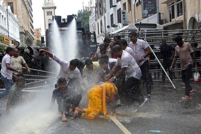 El presidente de Sri Lanka huyó este miércoles del país, que está sacudido por protestas y violentos enfrentamientos desde hace tres meses, en un contexto de grave crisis económica.Esta isla de 22 millones de habitantes, ubicado en Asia meridional, se enfrenta a su peor crisis económica desde la independencia en 1948, con escasez de gasolina, electricidad y una inflación sin precedentes.Los ataques islamistas de Pascua de 2019, y luego la pandemia de coronavirus (COVID-19), agotaron las reservas de divisas extranjeras provistas por los ingresos del turismo y las remesas de la diáspora.Fue la noche del 31 de marzo al 1 de abril, cuando cientos de manifestantes intentaron asaltar la residencia del presidente Gotabaya Rajapaksa en la capital, Colombo y exigieron su renuncia.El 1 de abril, las protestas se extendieron por todo Sri Lanka, y el presidente proclamó el estado de emergencia. Al día siguiente se impuso un toque de queda, pero cientos de manifestantes desoyeron la medida.El ejército se desplegó en apoyo de las fuerzas del orden.El 3 de abril, el gobierno dimitió con la excepción del presidente y de su hermano mayor, el primer ministro Mahinda Rajapaksa.El día 4 se levantó el toque de queda. La oposición rechazó la invitación del presidente a formar un gobierno de unión nacional.El gobernador del Banco Central renunció y fue sustituido tres días después.El día 5, el presidente Rajapaksa se quedó sin mayoría en el Parlamento, después de varias deserciones en el seno de la coalición gobernante Podujana Party (SLPP). El ministro de Finanzas Ali Sabry dejó su cargo al día siguiente de su nombramiento.Se levantó el estado de emergencia.El 9 de abril, decenas de miles de personas salieron a la calle en Colombo contra el presidente, tras peticiones en las redes sociales y de las Iglesias anglicana y católica.La patronal se unió al movimiento. Miles de manifestantes decidieron acampar frente al palacio presidencial.El 12 de abril, Sri Lanka declaró una moratoria de su deuda por 51 mil millones.El 18, el presidente anunció un nuevo gobierno, que incluía la destitución de dos de sus hermanos y un sobrino, pero mantuvo a su hermano mayor como primer ministro.El día 19, la policía mató a un hombre, el primer muerto desde el comienzo de las protestas.El 20, el Fondo Monetario Internacional (FMI) pidió al gobierno "reestructurar" su deuda antes de cualquier rescate.El 28 de abril y el 6 de mayo, las huelgas generales paralizaron el país. Se volvió a imponer el estado de emergencia.El 9 de mayo, el primer ministro Mahinda Rajapaksa dimitió tras los violentos ataques de sus partidarios contra los manifestantes antigubernamentales que dejaron nueve muertos y más de 225 heridos, según la policía.Se decretó un toque de queda general.El 10 de mayo, el ejército evacuó al ex primer ministro de su residencia en Colombo, amenazada por los manifestantes.La ONU denunció la escalada de la violencia y llamó al ejército a actuar "con moderación".El ministerio de Defensa dio la orden de disparar sin aviso.El 12, el presidente Gotabaya Rajapaksa nombró primer ministro a Ranil Wickremesinghe.El toque de queda se levantó el 15.A falta de dólares, el gobierno admitió que no era capaz a mediados de mayo de pagar tres cargamentos de petróleo ruso en espera fuera del puerto de Colombo.La entrega tuvo lugar finalmente el 28 de mayo. La escasez de combustible, cuyos precios se dispararon, provocó largas filas. El 31, se anunciaron fuertes aumentos de impuestos.El 3 de junio, el gobierno, temiendo una hambruna, pidió ayuda a la ONU. La Organización de las Naciones Unidas para la Agricultura y la Alimentación (FAO) prometió un plan de emergencia.El 18, los soldados abrieron fuego para contener un disturbio en torno a una gasolinera en seco (7 heridos).El 27, las ventas de combustibles se limitaron a sectores esenciales como la salud. La inflación alcanzó un récord del 54.6% en junio.El 9 de julio, el presidente Rajapaksa huye de su residencia en Colombo, asaltado por una turba de manifestantes. Prometió dimitir el 13 de julio.Los manifestantes incendiaron la residencia del primer ministro.El 13, el presidente Rajapaksa salió del país hacia las Maldivas en un avión militar con su esposa y dos guardaespaldas.Se declaró el estado de emergencia.Miles de manifestantes exigían la dimisión del jefe de gobierno junto con la del presidente.El primer ministro Ranil Wickremesinghe fue nombrado presidente interino.OF