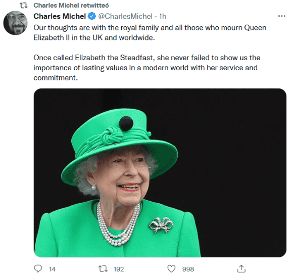 Los líderes de la Unión Europea despidieron a la reina Isabel II, quien murió este jueves a los 96 años de edad, y destacaron que "nunca dejó de mostrarnos la importancia de los valores duraderos en un mundo moderno" y "pocos dieron forma a la historia global" como hizo ella."Una vez llamada Isabel de Steadfast, nunca falló en mostrarnos la importancia de los valores duraderos en un mundo moderno con su servicio y compromiso", escribió en Twitter el presidente del Consejo Europeo, Charles Michel.También reaccionó al fallecimiento de la reina Isabel II la presidenta del Parlamento Europeo, Roberta Metsola, quien destacó que su "inquebrantable compromiso y servicio era un ejemplo para todos"."Pocos han dado forma a la historia mundial como Su Majestad la reina Isabel II", subrayó la maltesa en esta red social, en la que añadió que "el mundo llora con su pueblo en Reino Unido y más allá" la muerte "la reina Isabel La Grande".El alto representante de la UE para los Asuntos Exteriores y la Política de Seguridad, Josep Borrell, subrayó que la UE "rinde homenaje" a la "contribución única" de la soberana británica "a la construcción de la paz y la reconciliación".Borrell afirmó que el "extraordinario reinado de la Reina Isabel II supervisó acontecimientos clave de los siglos XX y XXI"."Aunque su pérdida se sentirá en todo el mundo, nuestros pensamientos inmediatos están con su familia y el pueblo del Reino Unido", concluyó el político español en su cuenta oficial en Twitter.La monarca británica "representa toda la historia de Europa, que es nuestro hogar común con nuestros amigos británico", dijo por su parte la presidenta de la Comisión Europea, Ursula von der Leyen, en una rueda de prensa en Rotterdam poco antes de conocerse su muerte.La política alemana remarcó que Isabel II nos había "dado a todos en estos años estabilidad, confianza" y mostrado "una gran valentía"."Para mí es una leyenda", señaló Von der Leyn al ser preguntada por los periodistas en una comparecencia junto al primer ministro de los Países Bajos, Mark Rutte, para respaldar el plan de recuperación de este país.GC
