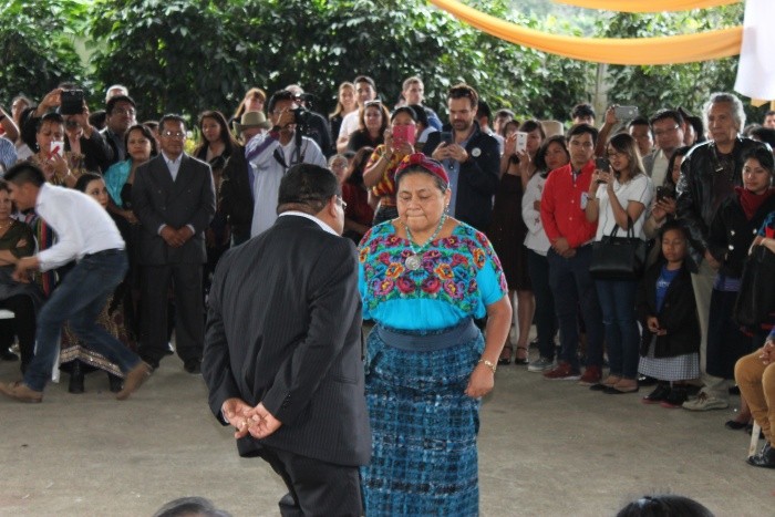 Con música de mariachi y un baile popular, la activista guatemalteca Rigoberta Menchú celebró los 25 años del Premio Nobel de la Paz que ganó por su lucha en favor de los derechos de los pueblos indígenas.El cuarto de siglo del acontecimiento fue celebrado en una "reunión íntima" en el Centro Pachaj de la Fundación Rigoberta Menchú Tum, a 39 kilómetros al sur de la capital, en el municipio de Sumpango, departamento de Sacatepéquez.En Pachaj, junto a familiares y a su "familia extendida", como llamó a personas y entidades que apoyaron su lucha, la indígena guatemalteca conmemoró el Premio Nobel de la Paz concedido en 1992."Sé que ustedes han sido la gente más querida y la más íntima", enfatizó la activista indígena guatemalteca, visiblemente emocionada, "en este día sagrado, en este sagrado lugar que se llama Pachaj".Recordó a las víctimas del pasado conflicto armado interno (1960-1996), sobre todo a los pueblos indígenas que sucumbieron ante la violencia de la lucha fratricida que causó 200 mil muertos y desaparecidos.Luego de la serie de actos protocolarios y solemnes por el aniversario 25 del Premio Nobel de la Paz, cumplidos a lo largo del año en Guatemala y en el extranjero, se organizó la fiesta popular en Pachaj que se prolongó hasta la noche.El homenaje a Menchú "de su gente" comenzó con la música del mariachi "Reyes del sur", que llegó a Guatemala junto con representantes de la comunidad náhuatl de Tuxpan, Veracruz.La doctora Honoris Causa, quien cantó con el mariachi un pasaje de la canción tradicional "El rey", agradeció la visita de los mexicanos y prometió acompañar "a nuestros hermanos náhuatl" en la fiesta patronal de Tuxpan.Menchú, en los reconocimientos a los allegados e instituciones que han acompañado su trayectoria política y social, reconoció a la Universidad Nacional Autónoma de México (UNAM) y al rector por permitirle ejercer la docencia relacionada con los derechos humanos.Entre sus más allegados, manifestó su aprecio y respeto a su veterana compañera de "mil batallas" por los derechos de los pueblos indígenas, Rosalina Tuyuc, fundadora de la agrupación de las viudas del pasado conflicto armado interno guatemalteco."Mi consejera de conciencia". Por eso, cuando alguna de mis gestiones no resultaba como queríamos, entonces yo me libraba y decía: "¡esa Rosalina... le salió mal! ", bromeó Menchú.Tras los reconocimientos, y ante una numerosa asistencia de invitados que atestaron una de las áreas del amplio terreno del Centro Pachaj, ubicado a un costado de la carretera Interamericana, volvió la música con la Marimba de Concierto, que cuenta con presentaciones en 30 países.En todo momento de la reunión, Ángel Canil Grave estuvo al lado de la Premio Nobel de la Paz 1992, cuya distinción resalta en un país azotado por la violencia y la poca vigencia de los derechos humanos en las más de tres décadas de la lucha armada y en la postguerra.Junto con su esposo Canil Grave, con quien se unió luego de recibir el Nobel, Menchú recibió las felicitaciones de sus seguidores, de numerosos miembros de su "familia extendida".Muchos de los asistentes, en especial familias de las comunidades indígenas, hicieron una larga fila para entregarle algún obsequio, abrazarla y tomarse la foto del recuerdo con la célebre guatemalteca, más reconocida por su galardón en el mundo que en su país.La fiesta continuó luego del concurrido almuerzo con otra ronda de canciones mexicanas con el mariachi "Reyes del sur", pero Menchú y Canil Grave "abrieron" el baile con una tradicional pieza de marimba, el instrumento musical nacional de Guatemala.Colocados en el centro de la improvisada pista de baile del Centro Pachaj, la pareja hizo los pasos del ancestral baile y luego siguió, rodeado de numerosos bailarines, con cumbias y otras piezas modernas interpretadas por el popular conjunto de Miguel Ángel Tzul y su "marimba orquesta".